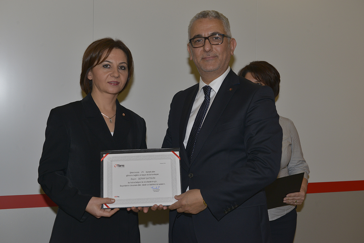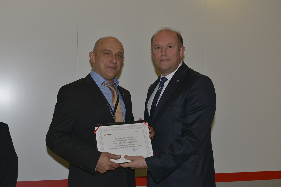 “Tüpraşlılık ayrı bir aidiyet ve kimliktir. 1985 yılında İzmit Rafinerisinde işbaşı yaptığımda bugün üst yönetimde görev yapan rafinericiler amirlerimdi. Biriktirdiğimiz anılar ve başarılanlar nedeniyle kıdem çok değerlidir. Tüpraş bugün yalnız Koç topluluğunun amiral gemisi değil, ülkemiz enerjisinin de amiral gemisi konumunda. Fuel Oil Dönüşüm Projesinin hayata geçmiş olması rafinerinin büyümesini, işletmenin adeta ikiye katlanmasını sağlayacak olması nedeniyle bölgemiz için de çok önemli bir gelişme. Türkiye’de tartışmasız lider, Avrupa’da yedinci, dünyada yeri olan böyle bir şirketin çalışanlarının bağlı olduğu sendikanın yöneticisi olmaktan onur duyuyorum. Bir başka özelliği ise ülkemizde belki de işçi sağlığı ve iş güvenliği konularında sürekli ve nitelikli eğitimlerin verildiği, denetimlerin uluslararası ölçülerde yapıldığı nadir şirketlerden biri olmasıdır. Bugün Türkiye’de her gün iş cinayeti yaşanırken, burada bizlere yaşamsal katkı sunan iş sağlığı uygulamalarının tüm iş kollarına örnek olmasını diliyor; 5 ve 35 yıl arası kıdem armağanı alan arkadaşlarımızı tebrik ediyorum.”