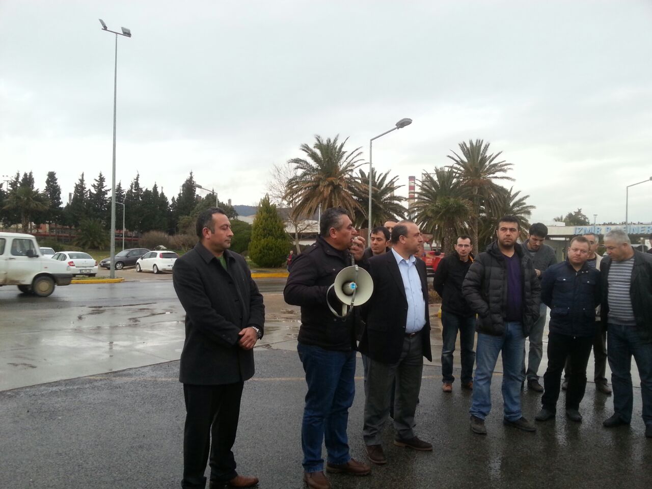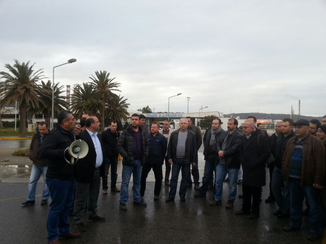 Şube Başkanımız Ahmet Oktay 23 Şubat 2015 tarihinde düzenlenen geniş katılımlı basın açıklamasında Aliağa Şubemizde örgütlü Tüpraş İzmir Rafinerisi’nde çalışan arkadaşlarımıza, Kıdem Tazminatının Fona Devredilmesi ve Özel İstihdam Bürolarının açılmasıyla ilgili bilgilendirme amaçlı açıklamalarda bulundu.