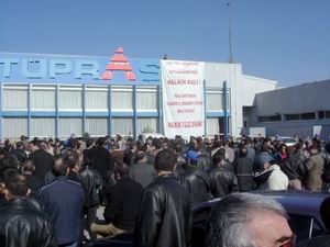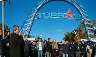 TÜPRAŞ ALİAĞA RAFİNERİSİNDE EYLEMTüpraş özelleştirmesinde süreç devam ediyor. Rekabet Kurulunun şartlı da olsa onay vermesinin ardından ÖYK kararı, 8 Kasım tarihli Resmi Gazetede yayınlandı. Böylece Kapsam Dışı personelin 10 günlük karar verme süresi başlamış oldu.Karar verme aşamasında bilgi vermek ve kendilerini tanıtmak amacıyla ilgili personel ile toplantı yapmak isteyen KOÇ grubunun üst düzey yöneticileri, Tüpraş’a bağlı rafinerileri dolaşmaya bugün Aliağa’da bulunan İzmir Rafinerisine gelerek devam etti.Aliağa Rafinerisinde çalışan Petrol İş üyesi işçiler ise bu ziyaretlere tepki gösteriyor. İşyerlerine Koç gurubu yöneticilerinin geleceğini öğrenen işçiler bu sabah işbaşı yapmadılar.Tüpraş dış kapı önünde servislerden inen yaklaşık beş yüz işçi rafinerinin üç kapısına dağılarak beklemeye başladı. Amaçlarını; " Bundan önce alıcı şirket temsilcilerini nasıl içeri sokmadı isek, Koç gurubunu da buraya sokmaya niyetimiz yok.” Diyerek açıklayan Şube Başkanı İbrahim Doğangül, “Çünkü bize göre hiçbir şey sona ermiş değil. Gerek hukuken gerekse bizim ve toplumun vicdanında bu satış geçersizdir. Petrol İş sendikası özelleştirmeye karşı sonuna kadar mücadele etmeye kararlıdır. Koç gurubu ihalede en yüksek teklifi veren taraftır sadece.Buradan Kapsam Dışı çalışanlara da sesleniyorum; gelin örgütlü bir şekilde davranın. Nasıl sendika üyesi işçiler tavır koyuyorsa sizde öyle davranın. Tek başınıza kurtuluş şansınız yok. Kendinize güvenin. Boşuna telaşlanmayın. Burayı çalıştırmak için size ve bize mutlaka ihtiyaçları var. Biz olmasak burası çalışamaz” dedi.Saat 11.00 sıralarında Koç gurubu yetkililerinin gizlice denizden giriş yapıp sosyal tesislerdeki bir salonda olduklarını öğrenen işçiler, kısa sürede toplanıp salonun etrafını kuşattılar. Burada ıslıklar, düdükler, araç klaksonları ve teneke çalarak müthiş bir gürültü ile protestolarını sürdüren işçiler, hükümet aleyhine sloganlar atarak protestolarını sürdüren işçiler, toplantı salonunun duvarına Özelleştirme karşıtı büyük bir pankart astılar.Saat 16.00’ya kadar süren eylem heyetin Rafineriden ayrılması ile sona erdi.Heyetin otomobillerinin önünde bir konuşma yapan Doğangül; “ Bu işlem hukuka ve halkın çıkarlarına aykırıdır. Bu işleri yapan hükümetin politikalarına, ideolojik tutumuna karşıyız. Tüpraş halkın yararına işletilmelidir. Oysa satılması halinde sadece bir grup sermayecinin çıkarı gözetilmiş olacaktır.Tüpraş’ın yarattığı milyar dolarlar KOÇ’un cebine değil, halkın hazinesine girmelidir. Kim nerede ne işlem yaparsa yapsın, bu işlem bizim için geçerli değildir. Özelleştirmelere karşı çıkmaya devam edeceğiz.Sizleri de bir daha burada görmek istemiyoruz. ‘gidişiniz olsun, dönüşünüz olmasın!’ diyerek, işçilerin ortak öfkesini dile getirdi.Eylem süresince Aliağa Tüpraş Rafinerisinde dolum ve satış işlemi yapılmadı.Aliağa işçilerine destek vermek amacıyla Batman Rafinerisi işçileri de eylem yaptı.