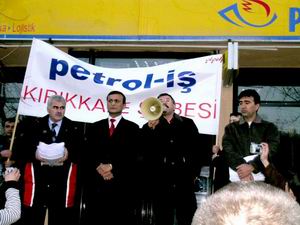Tüpraş çalışanları iş çıkışı postane önünde ellerinde dilekçelerle toplandılar. Kırıkkale’de Petrol-İş’e bağlı diğer işyerlerinde çalışanlarla birlikte hareket edip Cumhurbaşkanlığı’na, Başbakanlığa ve Özelleştirme Dairesi Başkanlığı’na faks çekilmiştir.Postane önünde toplanan işçilere bir konuşma yapan Şube Başkanı Recep Sefer “Yargı kararı derhal uygulansın. Tüpraş, Kırıkkale, Kocaeli, Aliağa, Batman Rafinerileri ile Körfez petrokimya iş yerlerinde ortak uygulanan faks çekmenin amacı, Hukuk devletinde yargının kararına saygının olmadığını, bunların makamlarca takip altına alınmasını ve hukuka yapılan saygısızlığı dile getirip taleplerimizi anlattık. Cumhurbaşkanımızdan ümitliyiz inşallah yargının kararını en iyi o anlayıp hukuka saygıyı hatırlatacaktır” dedi.Daha sonra çeşitli sloganlar atılarak, Tüpraş çalışanları fakslarını postaneden çekerek eylemlerini bitirdiler.