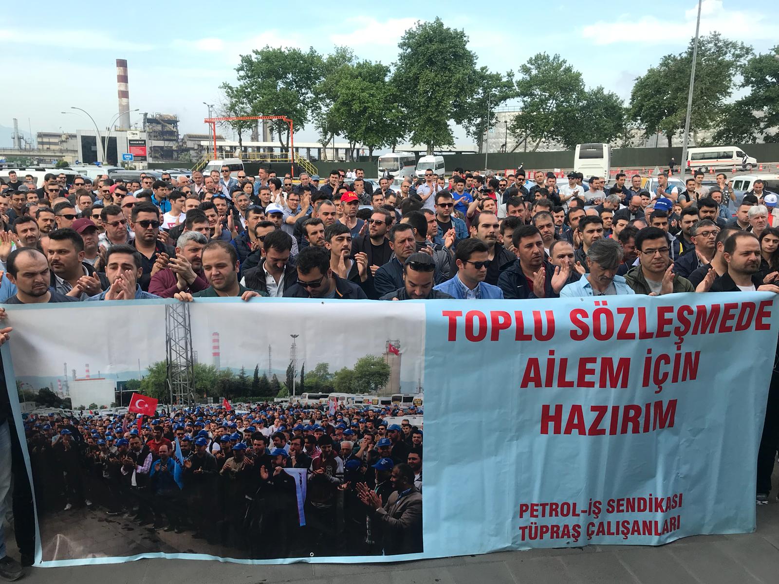 Arabulucu ile yapılan iki toplantıdan da herhangi bir olumlu sonuç alınamaması, taleplerimizin işveren tarafından karşılık bulmaması nedeniyle Tüpraş işçisinin günlerdir yapmış olduğu tam gün iş bırakma eylemlerinden sonra 16 Mayıs 2019 tarihinde Tüpraş’ın İzmit, Aliağa, Kırıkkale ve Batman rafinerilerinde çalışan 00.00-08.00,08.00-16.00-16.00-00.00, gündüz ve bakım personeli fabrikaya kapanarak işverene karşı tepkilerini gösteriyorlar.