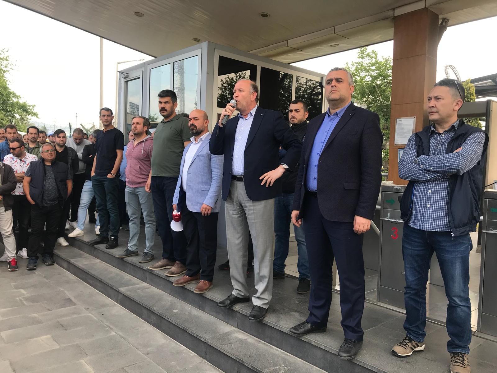 Kocaeli Şube Başkanımız Salih Akduman’ın fabrika önünde toplanan üyelerimize yaptığı konuşmanın ardından sloganlar eşliğinde yürüyerek fabrikaya kapanıldı.