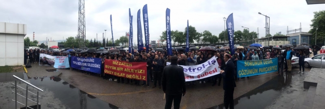 Sendikamız ile Tüpraş işvereni arasında devam eden TİS görüşmelerinin Arabulucu sürecine girmesi ve Arabulucu toplantısından da herhangi bir olumlu sonuç çıkmaması nedeniyle gerçekleştirdiğimiz 1 günlük iş bırakma eylemleri 10 Mayıs 2019 tarihinde de sağanak yağmura rağmen devam etti.