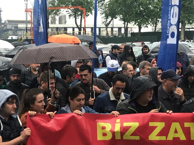 Sağanak yağmur altında B kapıda toplanan Tüpraş işçisi alkış ve sloganlar eşliğinde A kapıya kadar yürüdü.Şube Başkanımız Salih AKDUMAN TİS süreci ile ilgili yağmur altında bekleyen üyelerimize açıklamada bulundu.