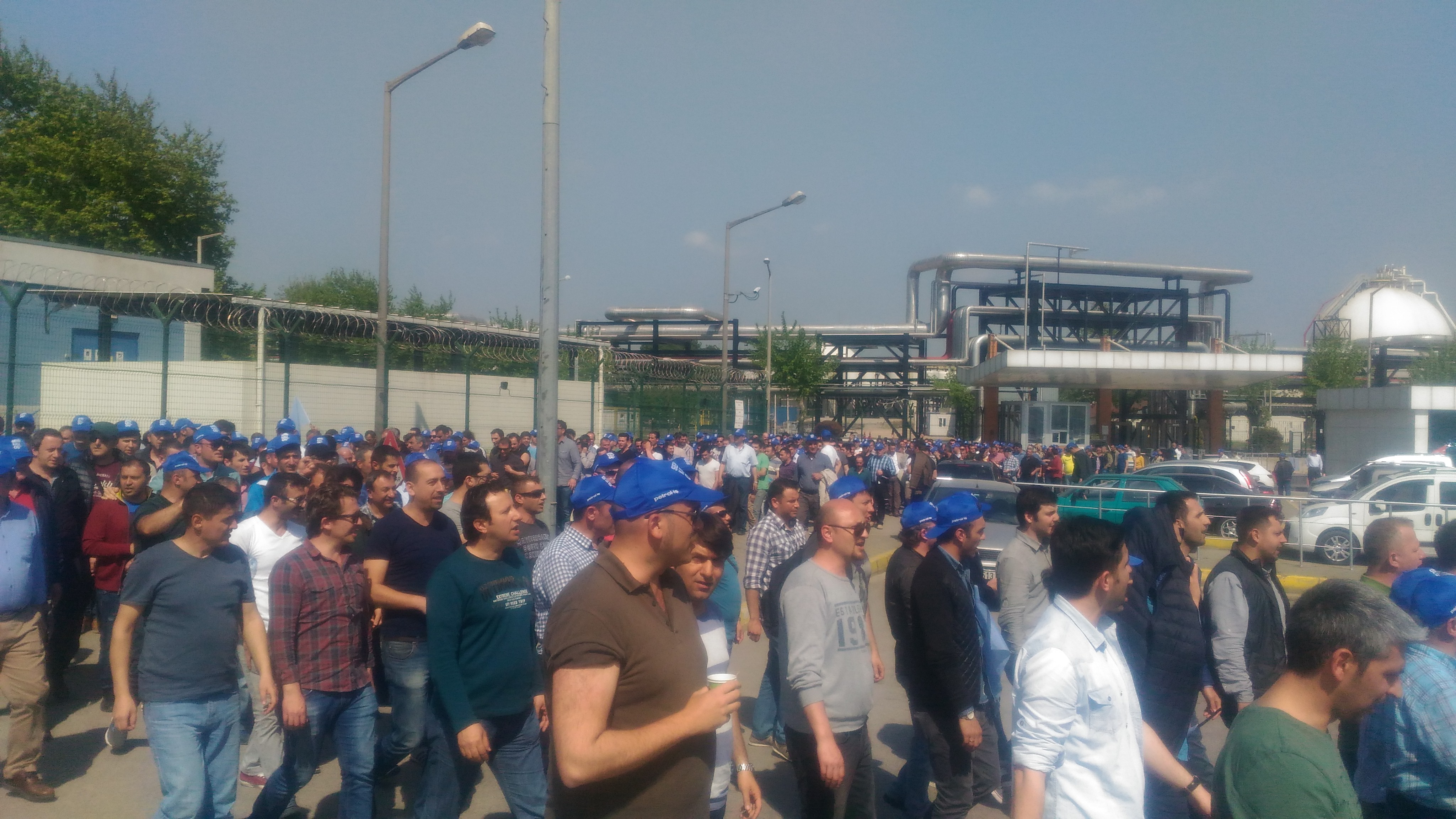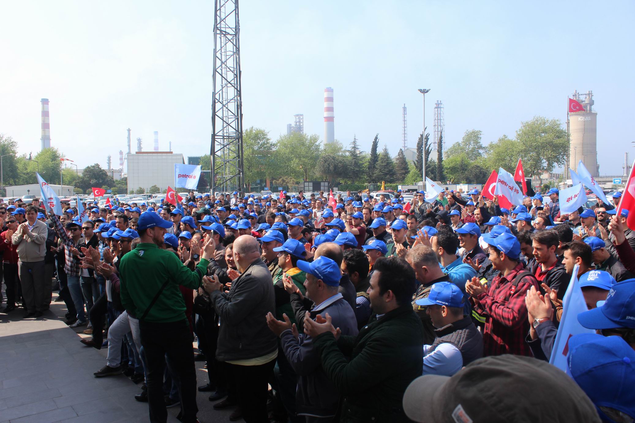 Kocaeli Şubemizin örgütlü olduğu Tüpraş İzmit Rafinerisi’nde TİS görüşmelerinin işverenin dayatmaları ile çıkmaza girmesi sonucu 3 Mayıs 2017 tarihinde 1 günlük iş bırakma eylemi yapıldı. Kocaeli Şube Başkanımız Salih Akduman fabrika önünde toplanan üyelerimize işverenle yapılan müzakereler sonucunda TİS’in anlaşma sağlanamadığı maddeleri hakkında açıklamalarda bulundu.