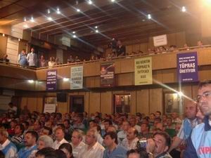 Yoğun bir katılımın olduğu Kırıkkale Paneli’nde izleyiciler attıkları, “Tüpraş satılmaz, Kırıkkale geçilmez”, “Tüpraş, bizimdir, bizim kalacak”, “Tüpraş’ı satanı biz de satarız”, “Tüpraş Vatandır, Vatan satılmaz”, “KİT’ler sağolsun, IMF defolsun”, “Kahrolsun ABD, İşbirlikçi AKP,” “IMF defol, bu memleket bizim”, “Hükümet şaşırma, sabrımızı taşırma” “Tüpraş’a uzanan eller kırılsın”, “Gün Gelecek, Devran Dönecek, AKP Halka Hesap verecek” şeklindeki sloganlarla panel salonunu çınlattılar.