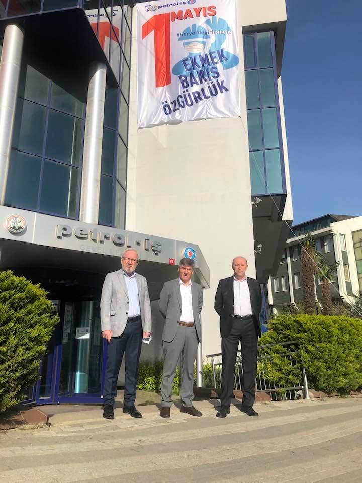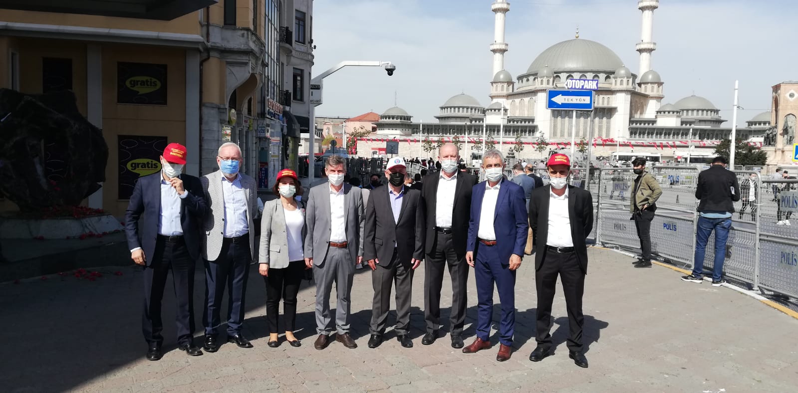 1 Mayıs Birlik, Mücadale ve Dayanışma Günü vesilesi ile konfederasyonumuz Türk-İş Taksim’de bir anma programı gerçekleştirdi. Programa, Türk-İş Genel Başkanı Ergün Atalay ve Türk-İş Yönetim Kurulunun yanı sıra sendikamız Genel Başkanı Süleyman Akyüz, Genel Sekreteri Salih Akduman ve Genel Yönetim Sekreteri Ünal Akbulut da katıldı.