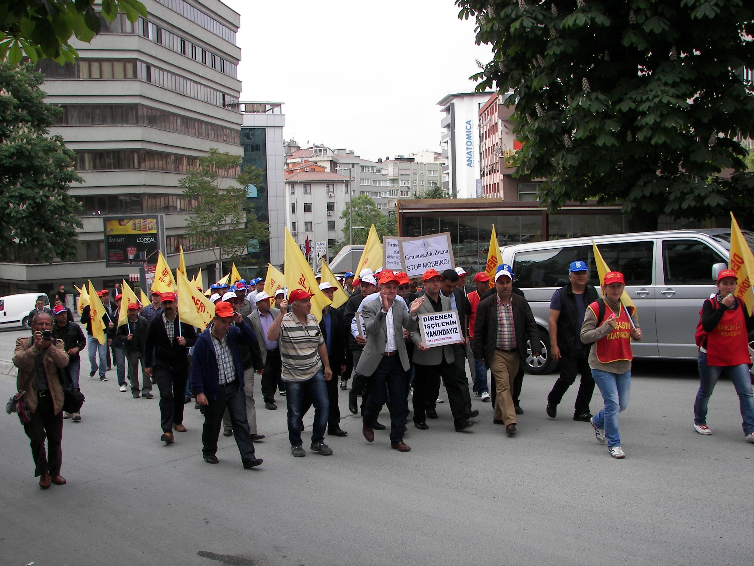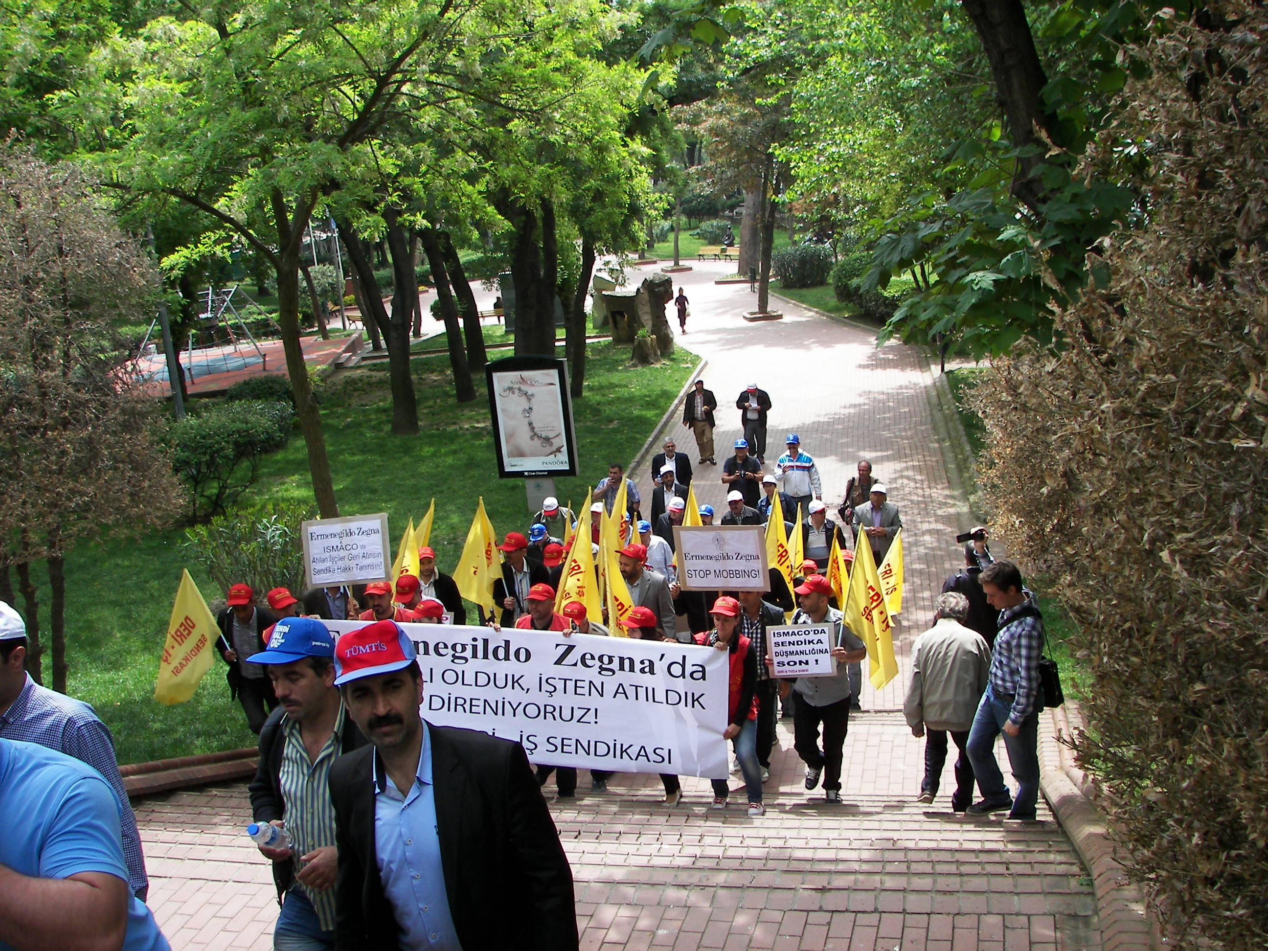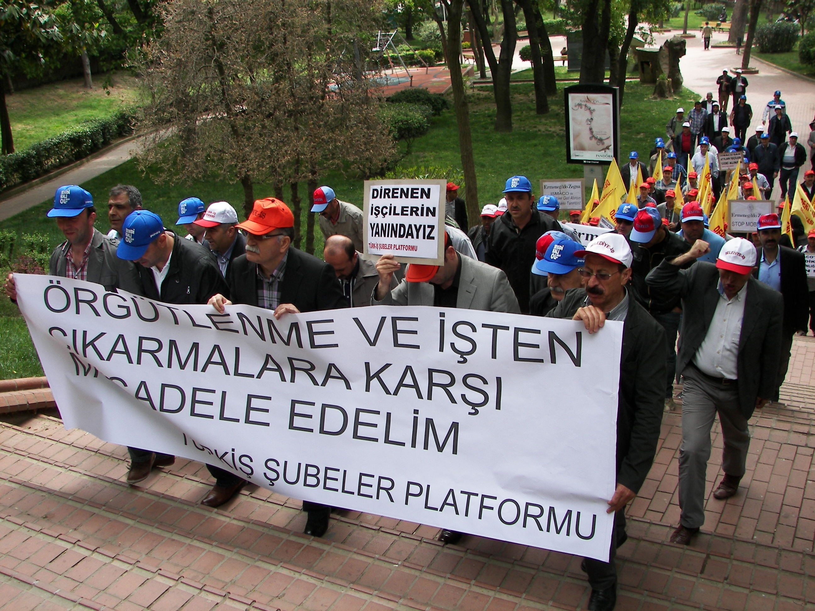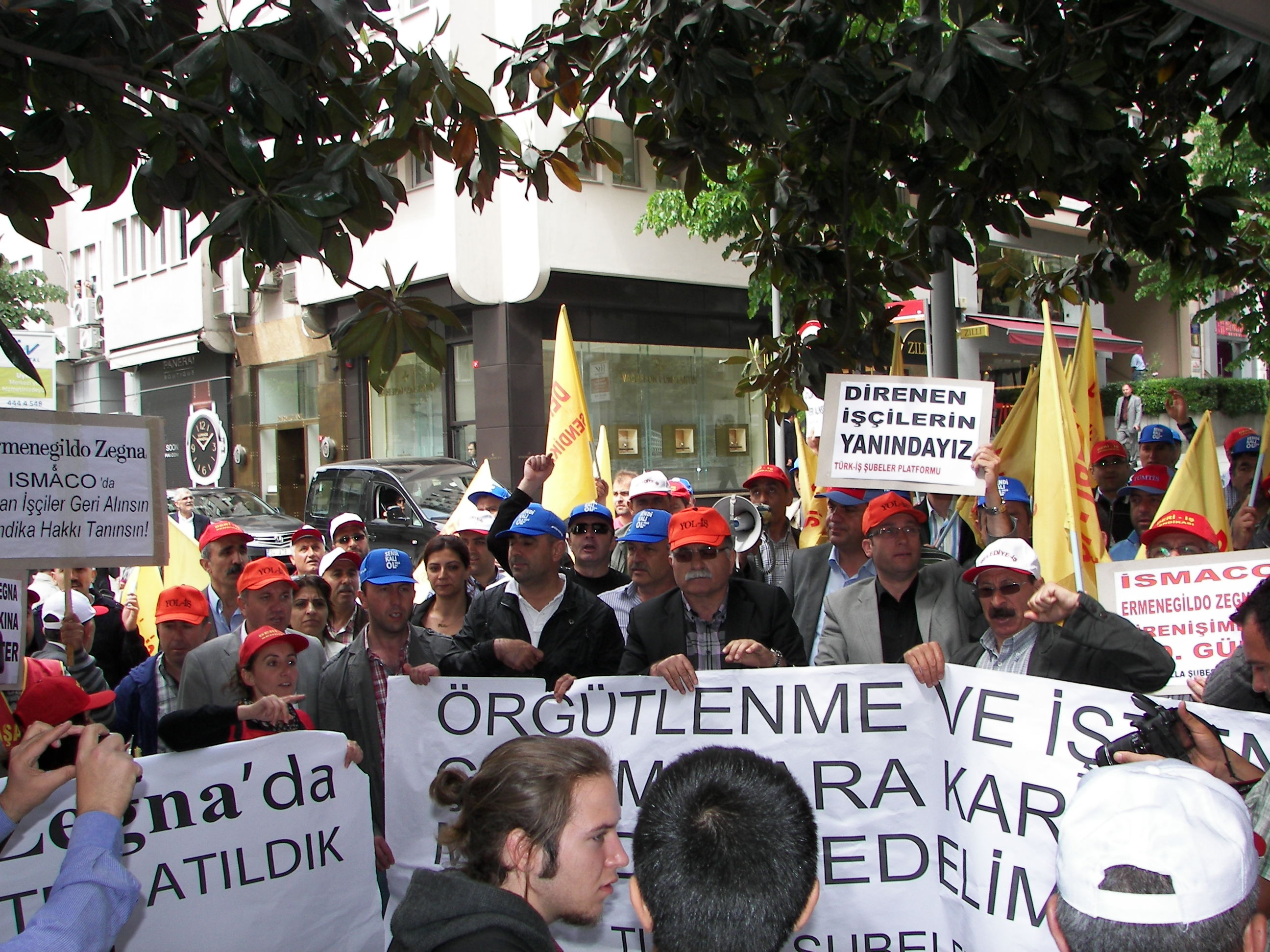 Ziyaretlerde ilk durak Pak Holding önünde direnen Pakmaya işçileri oldu. Daha sonra Nişantaşı’nda bulunan Ermenegildo Zegna’nın satış mağazası önünde basın açıklaması yapan Ismaco işçilerinin eylemine katıldılar. İşçiler sık sık “Sendika hakkımız engellenemez”. “Birleşe birleşe kazanacağız” sloganlarını attı. Şubeler platformu’nun Kuzu deri ziyaretinde ise Deri İş Genel teşkilatlandırma Sekreteri Hasan Uluşan Türk-İş’in direnişlere sahip çıkmasını istedi.