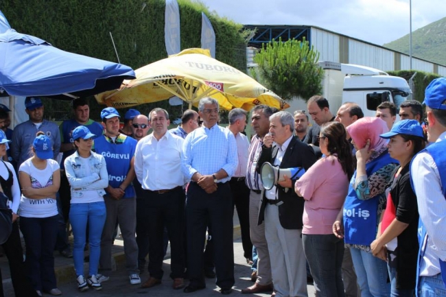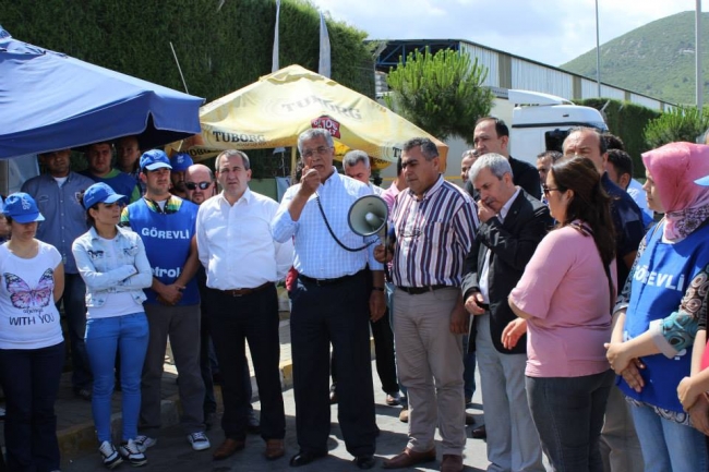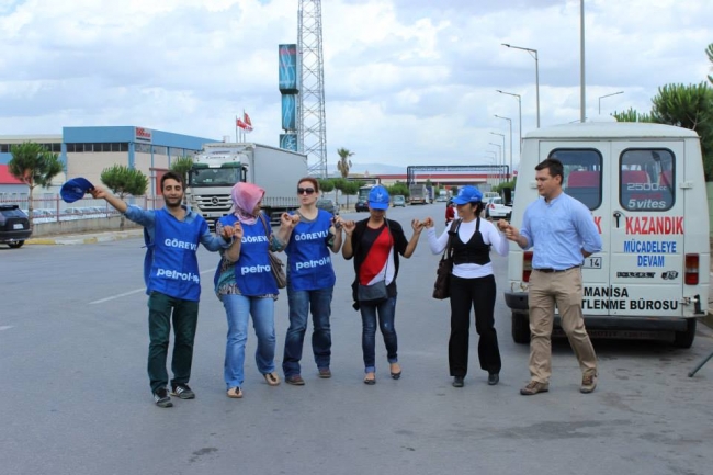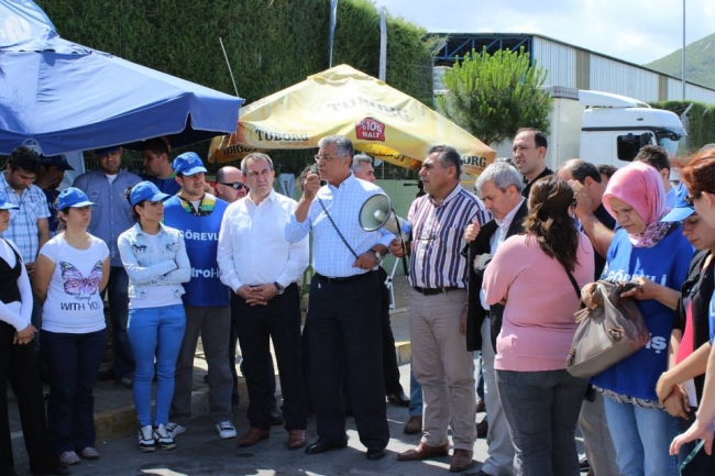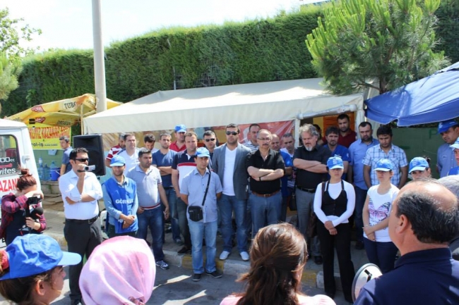 Petrol-İş Sendikası adına konuşma yapan Genel Mali Sekreterimiz İbrahim Doğangül Standard Profil Yönetim Kurulundan talep ettikleri koşulları açıkladı. Manisa'da bu örgütlenmemizin başarıyla sonuçlanacağına eminiz diyen Doğangül konuşmasına şöyle devam etti, " Bir an önce taleplerimizi yerine getirmelisiniz, birincisi davalar bittikçe işe iade davasını kazanan arkadaşlarımızın işe alınmalı en temel talebimiz bu. İkincisiyse içerideki yönetim anlayışını değiştirilmeli. Bu yönetici değiştirilerek mi yapılır başka yöntemlerle mi yapılır bilemeyiz sizin işinize karışmayız. Fakat sizin içerideki yönetim anlayışınız tam bir köle düzeni."