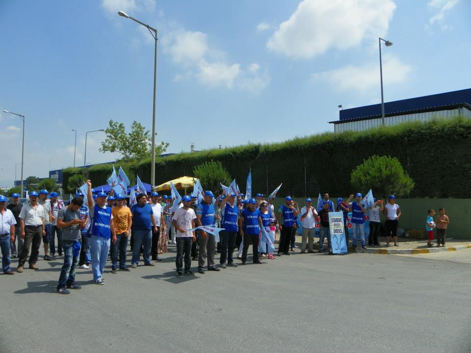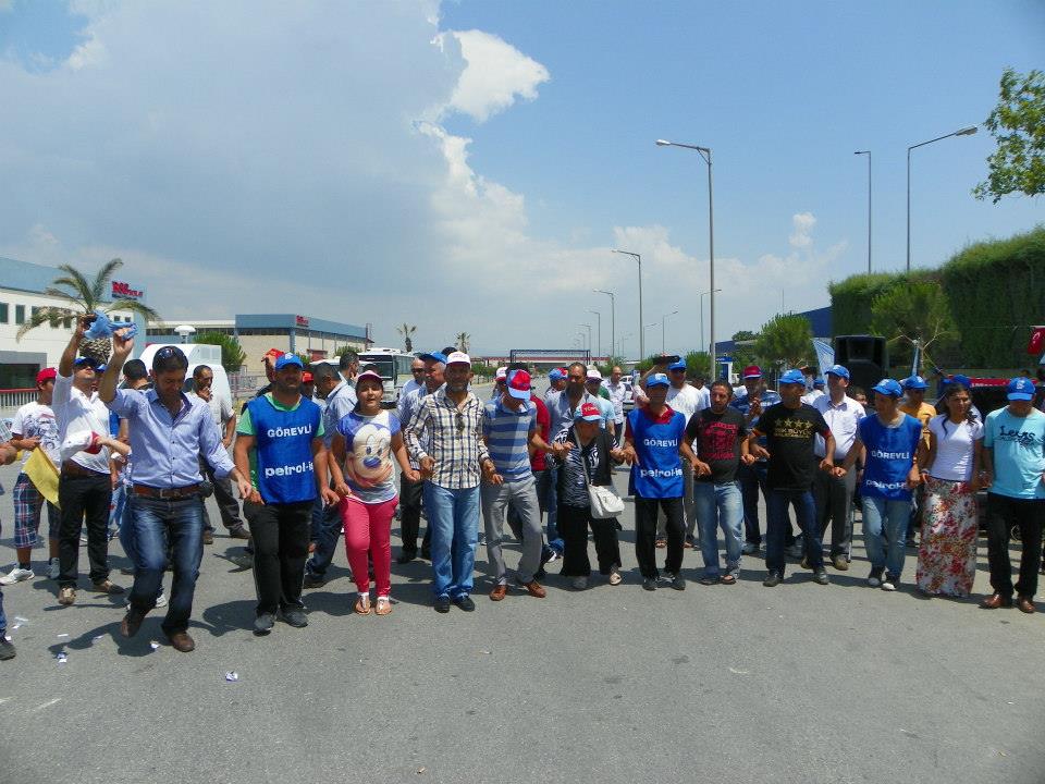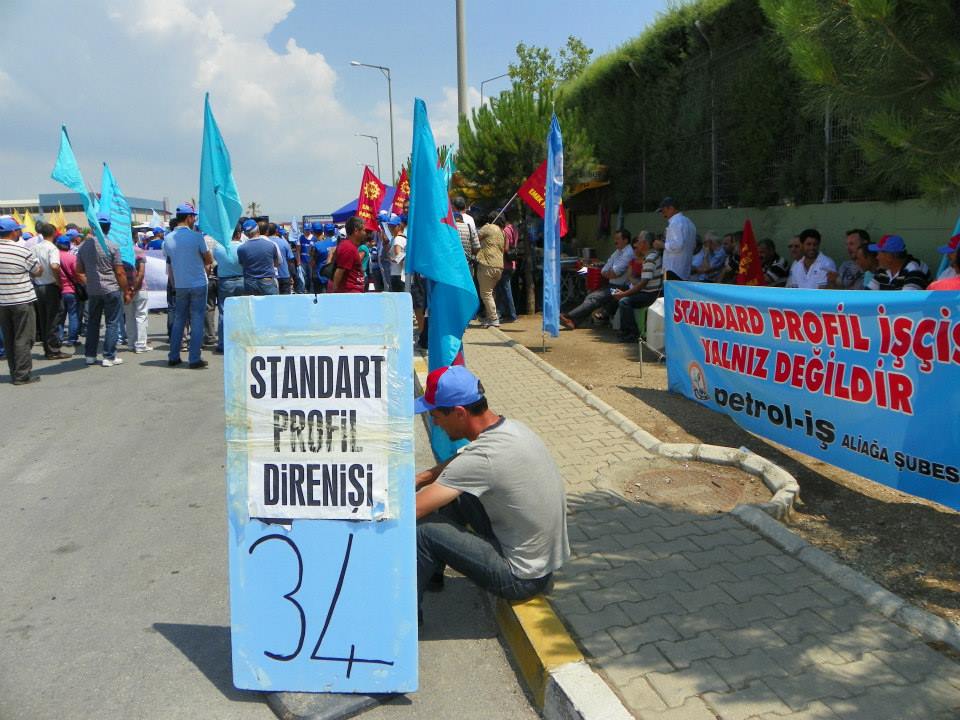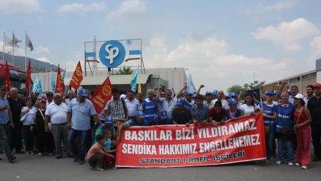 Türk-İş Ege Bölge Temsilciliği’nin çağrısıyla bir araya gelen işçiler Petrol-İş’e üye oldukları için işten çıkarılan ve 36 gündür fabrika önünde direnişte olan Standart Profil işçilerini ziyaret etti. Ziyaret için Manisa Organize Sanayi bölge içinde toplanan Deri-İş, TÜMTİS, Tek Gıda-İş, Petrol-İş, Tez Koop-İş, Tes-İş, Basın-İş ve diğer sendikaların yöneticileri ve üyeleri “Yaşasın 15-16 Haziran direnişimiz” sloganları ile Standart Profil’in önüne yürüdüler. KESK İzmir Şubeler Platformu Dönem Sözcüsü İsmail Akyol ve çok sayıda kamu sendikası yöneticinin de katıldığı yürüyüşe Emek Partisi İzmir ve Manisa Örgütleri de destek verdi.