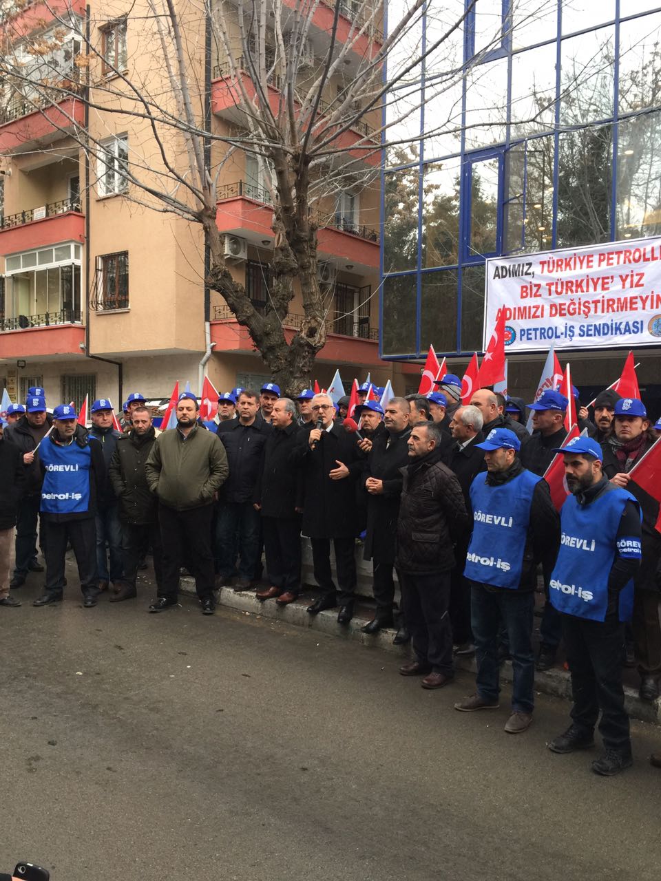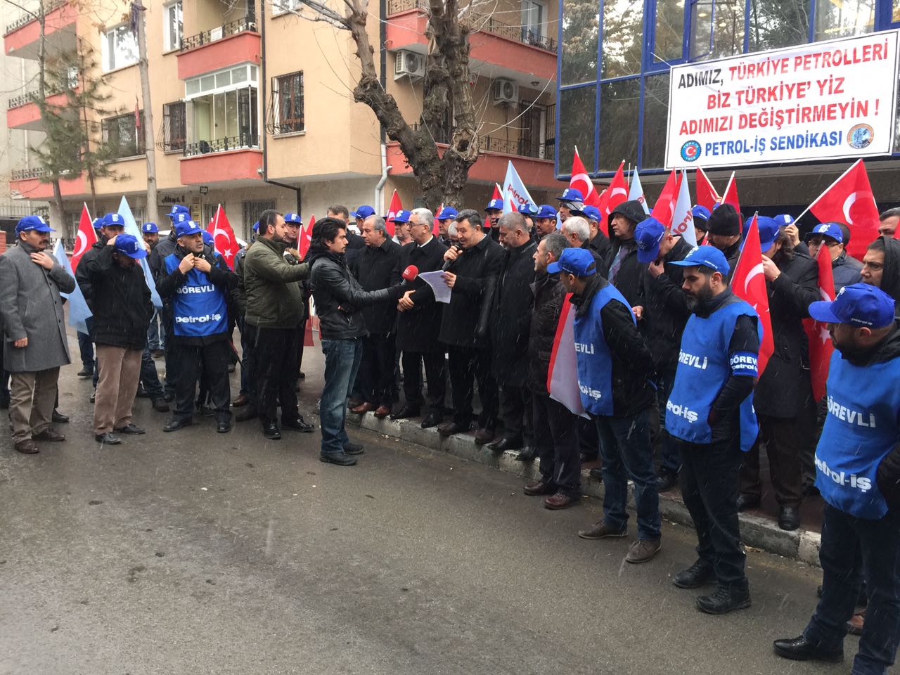 Türkiye Petrolleri’nin bazı faaliyetlerinin kurum dışına devredilmek suretiyle, ülkemizin gözbebeği olan bu kuruluşun küçültülmesine karşı Enerji ve Tabii Kaynaklar Bakanlığı önünde düzenleyeceğimiz basın açıklaması engellenmiştir.