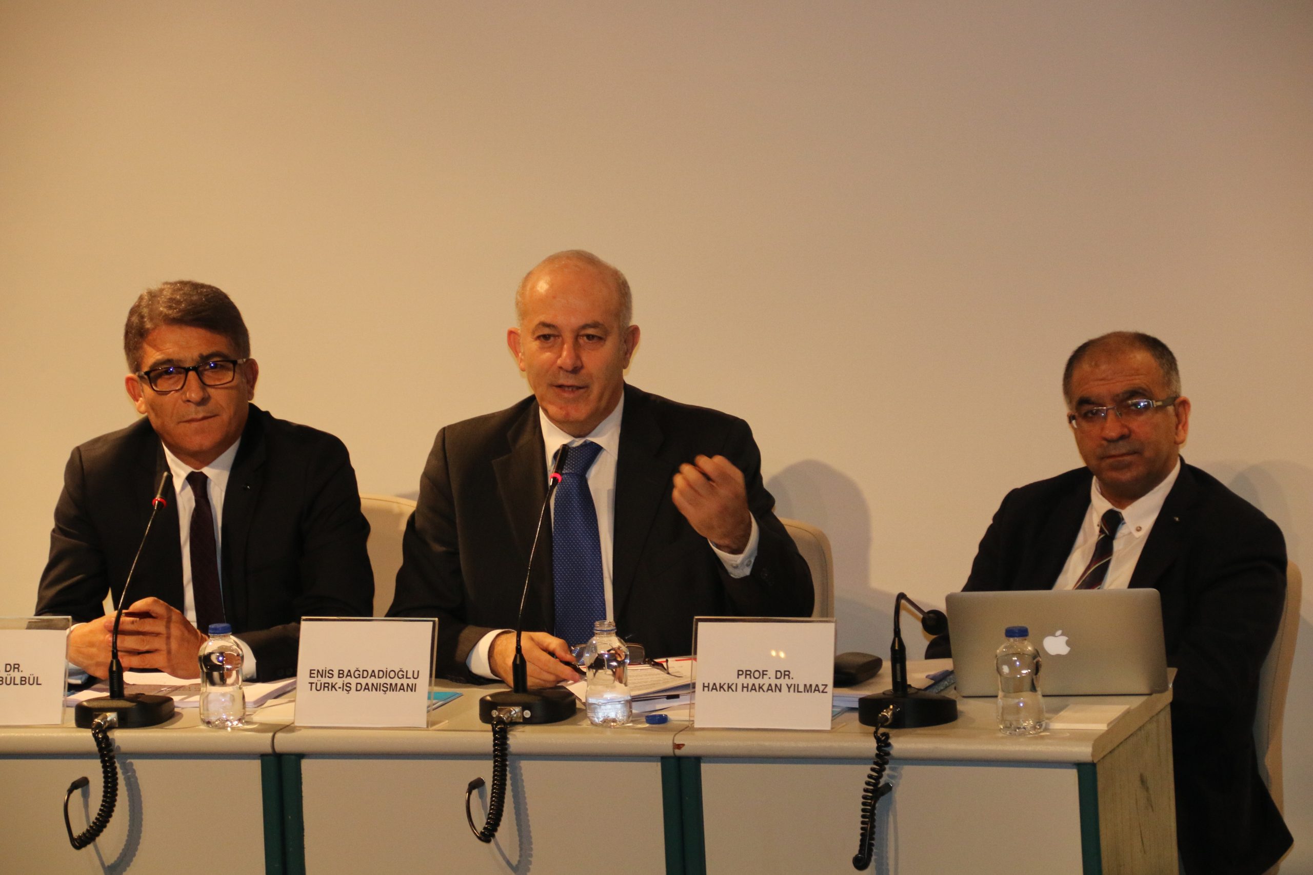 Konferansta Oturum Başkanlığı yapan Türk-İş Danışmanı Enis Bağdadioğlu, ücretliler üzerindeki vergi yükünün hafifletilmesi ve vergi adaletinin sağlanması için Türk-İş olarak yaptıkları çalışmalar ile ilgili bilgi verdi. Asgari ücrete ilişkin Türk-İş’in tavrını ortaya koyan Bağdadioğlu, daha sonra sözü Doç. Dr. Duran Bülbül’e bıraktı.