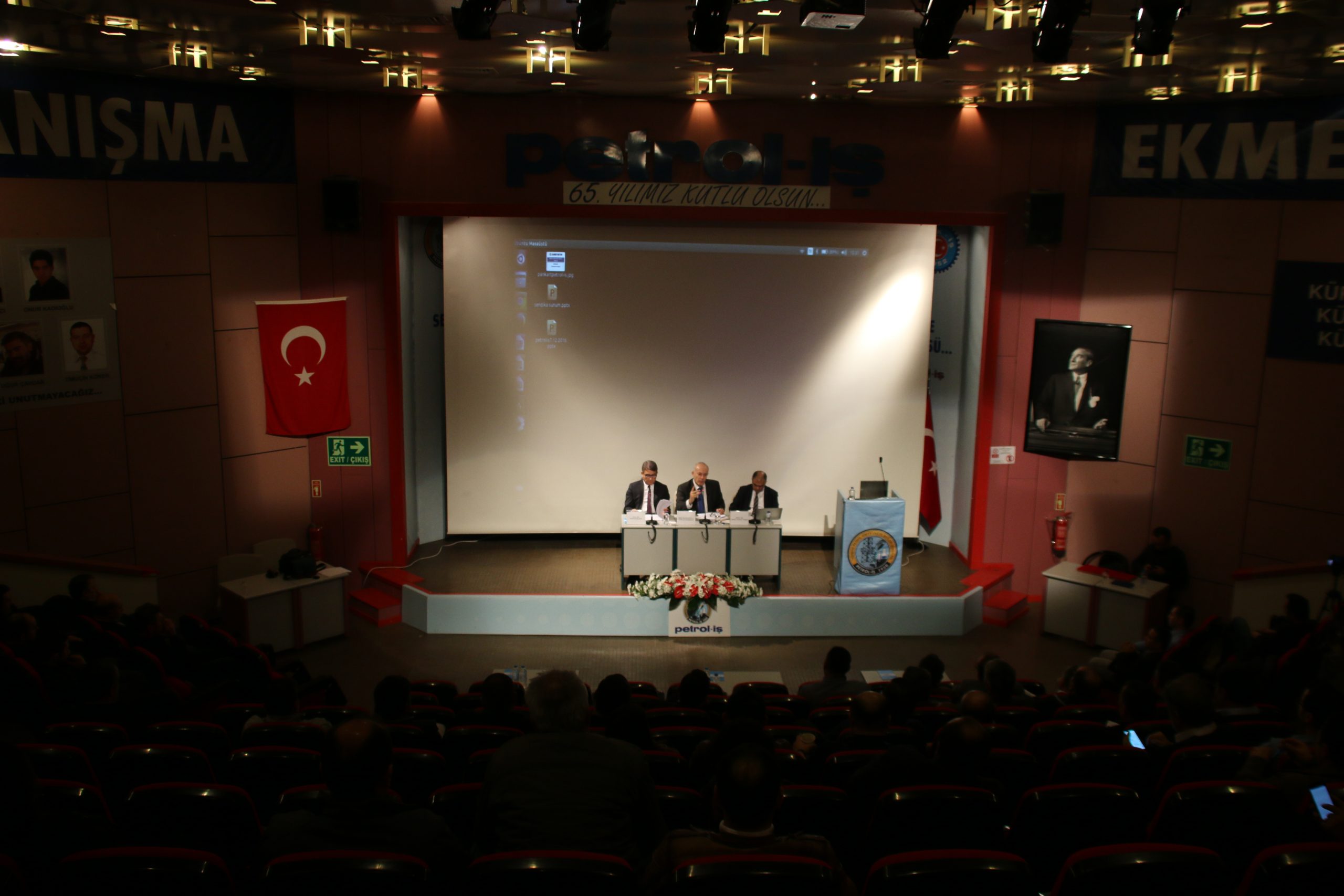 Konferans saygı duruşu ve İstiklal Marşı’nın ardından Genel Başkanımız Ali Ufuk Yaşar’ın açılış konuşması ile başladı. Genel Başkanımız Ali Ufuk Yaşar “ Konfederasyonumuz Türk-İş’in Genel Başkanı, çok değerli katılımcılar, konuklar ve akademisyenler size şahsım ve Petrol-İş Merkez Yönetim Kurulumuz adına hoşgeldiniz diyor, sizleri saygı ve sevgi ile selamlıyorum.” dedi.