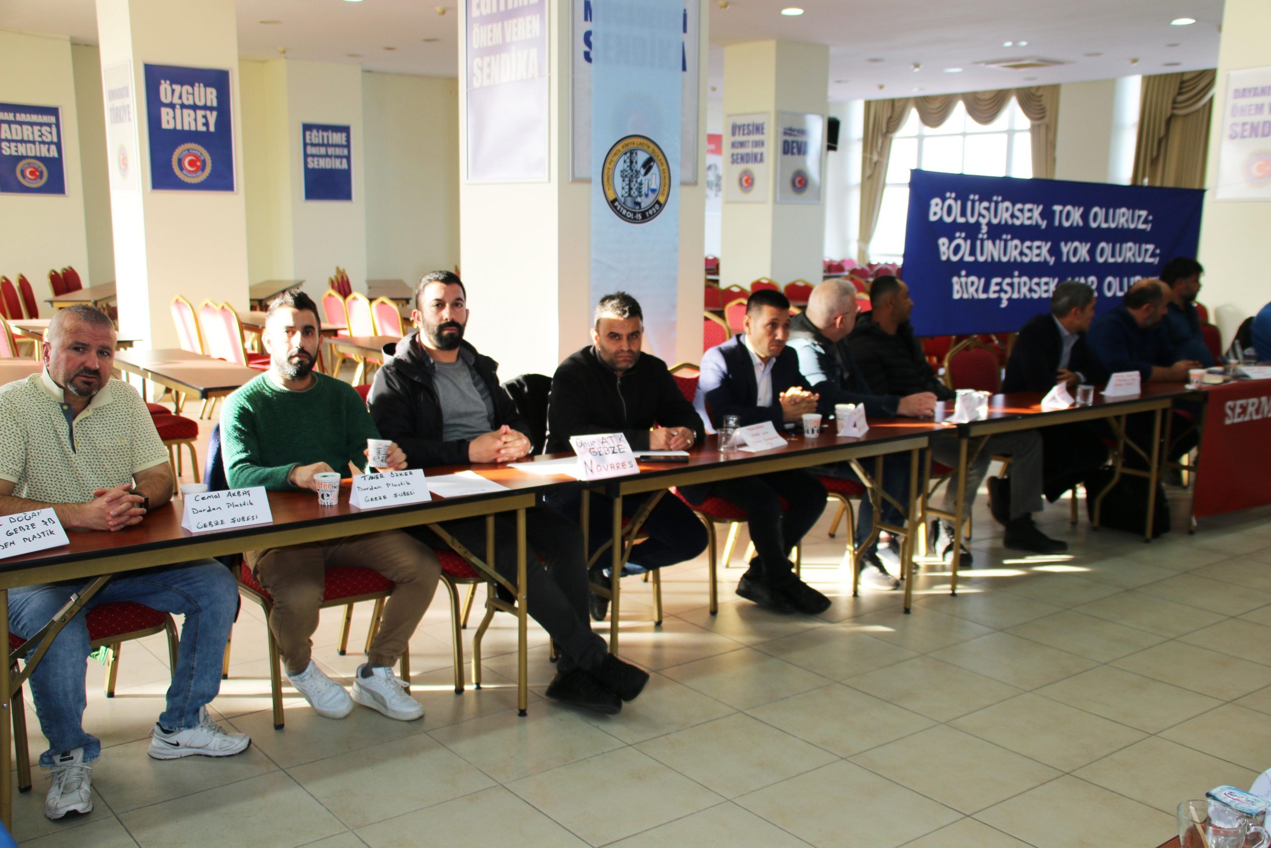 Eğitimin ikinci gününde sendikamız Merkez Yönetim Kurulu Üyeleri temsilcilerimizle biraraya geldi. Saat 16.00’da başlayan toplantı yaklaşık 19.30’da sona erdi. Bu süre zarfında Genel Merkez Yöneticileri sendikanın idari ve örgütsel yapısı ile kendi sorumluluk alanı içerisindeki konulara ilişkin temsilcilere bilgi verdi, gelen soruları yanıtladılar.