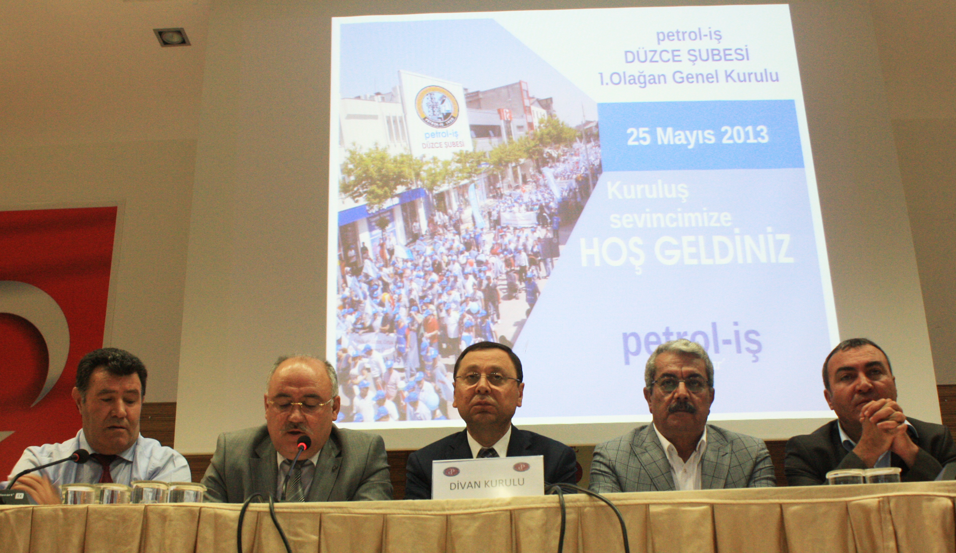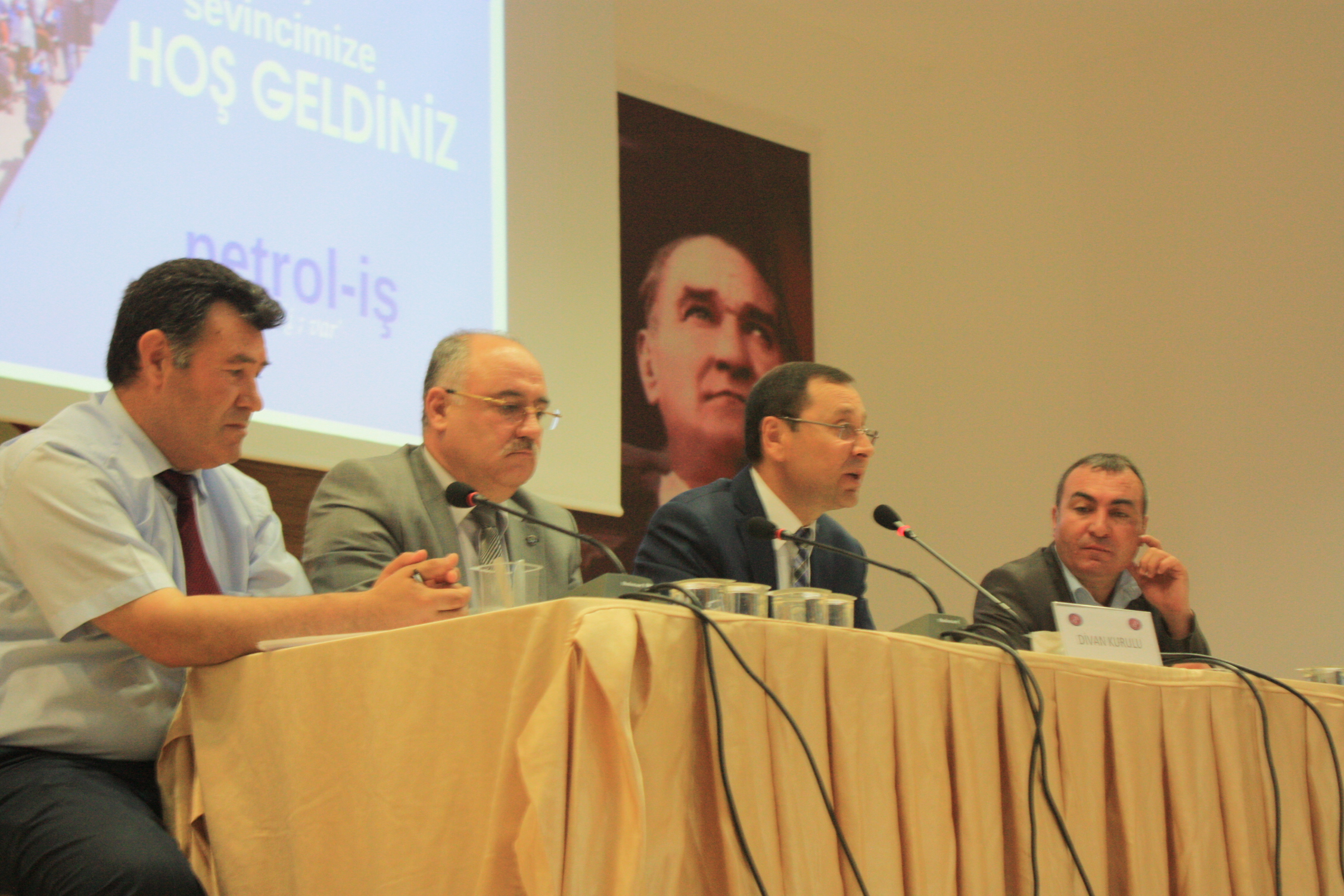 Ünal Akbulut’un konuşmasının ardından divan oluşturdu. Divan Başkanlığına Genel Başkanımız Mustafa ÖZTAŞKIN, divan üyeliklerine ise  Petrol-İş Ankara Şube Başkanımız Şuayip GÜL, Petrol-İş Adana Şube Başkanımız Abdül Mecit Dönmez, Petrol-İş İzmir Şube Başkanımız A.Gani Gündoğdu, Petrol-İş Trakya Şube Başkanımız Turgut Düşova  seçildi.