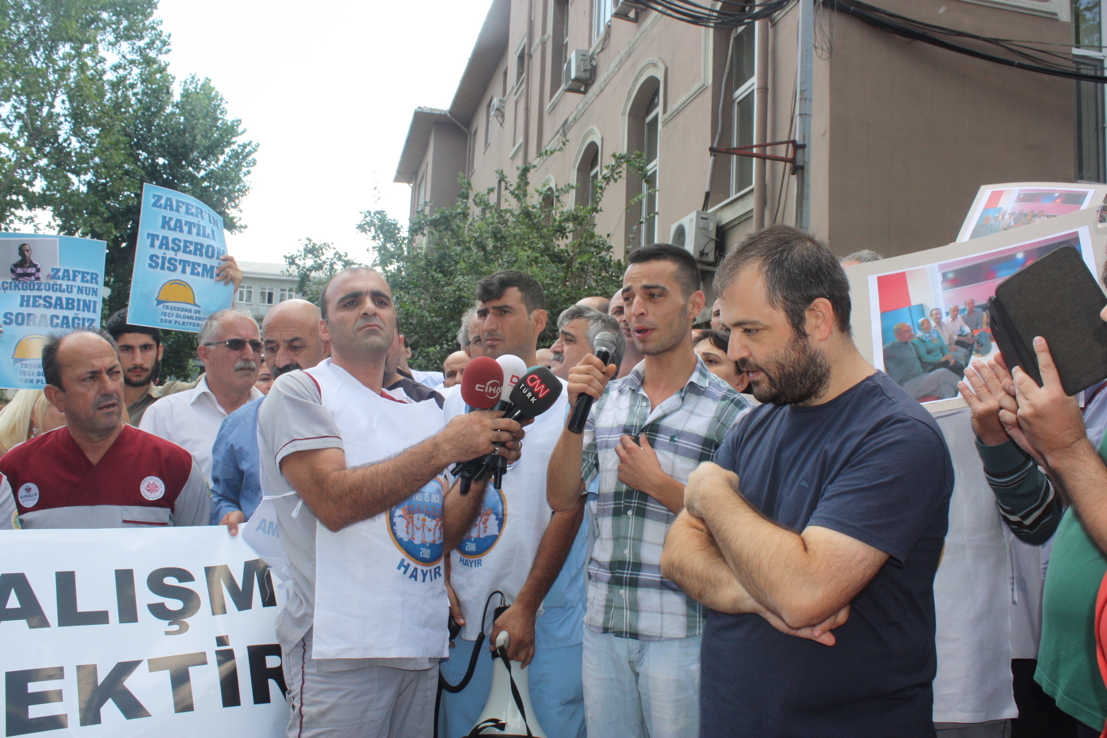 Zorla lağım temizletildikten sonra kaptığı enfeksiyon nedeniyle karaciğer yetmezliğinden yaşamını yitiren taşeron sağlık işçisi Zafer Açıkgözoğlu’nu anmak için bugün İstanbul Çapa Tıp Fakültesi Hastanesi Monoblok önünde bir basın açıklaması yapıldı.