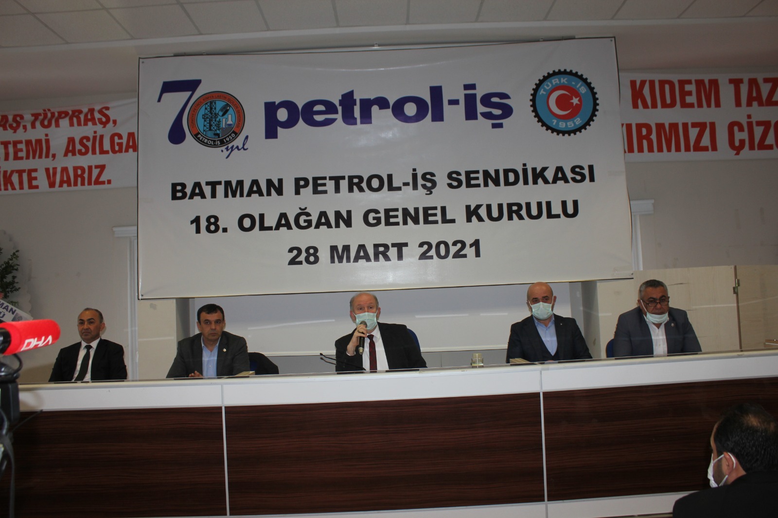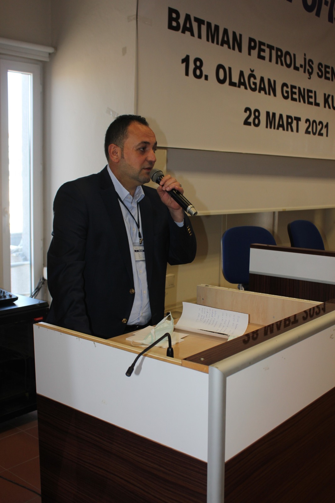 Batman Şube Genel Kurulumuz 28 Mart Pazar günü saat 10.00’da başladı. Genel Başkanımız Süleyman Akyüz Genel Kurula katılanları selamladıktan sonra Türkiye ve emek gündemi, üzerine değerlendirmelerde bulundu. Genel Başkan konuşmasında pandeminin işçi sınıfı üzerinde yarattığı baskıyı, pandemi döneminde uygulanan kısa çalışma ödeneği, ücretsiz izin uygulaması, kod-29 gibi başlıklar üzerinde ayrıntılı bir şekilde ele aldı. Son dönemde etkisini daha da hissettiren ekonomik kriz konusunda da işçi sınıfını daha da zor günlerin beklediğine işaret eden Genel Başkan örgütlü çalışmanın ve örgütlü mücadele vermenin önemine dikkat çekti. Genel Başkanımız Süleyman Akyüz konuşmasının devamında işsizlik, vergi dilimlerindeki adaletsizlik, TPAO’nun kamu eliyle kurumsal yapısının güçlendirilmesi, sendikal örgütlenme ve Petrol-İş’in politikaları gibi konulara da yer verdiği konuşmasında, başarılı bir kongre süreci geçirilmesi temennisinde bulundu.