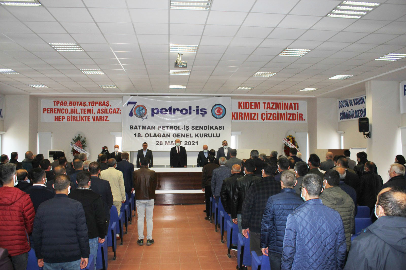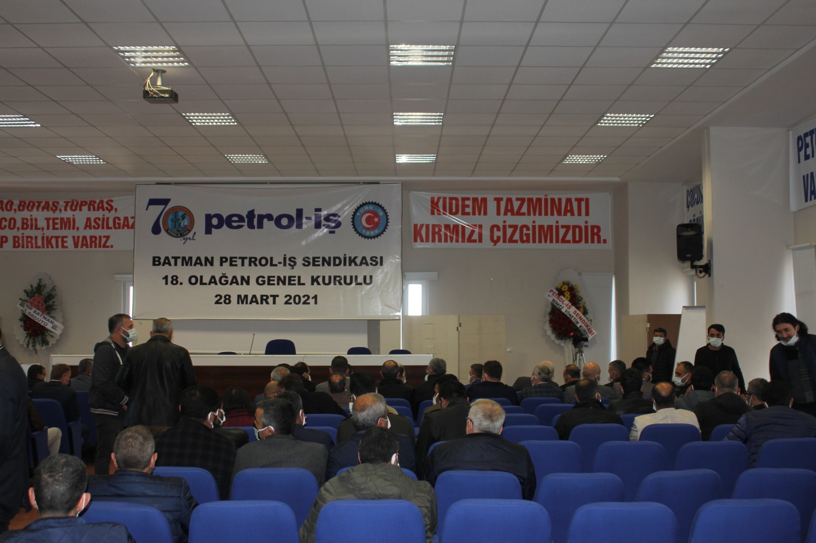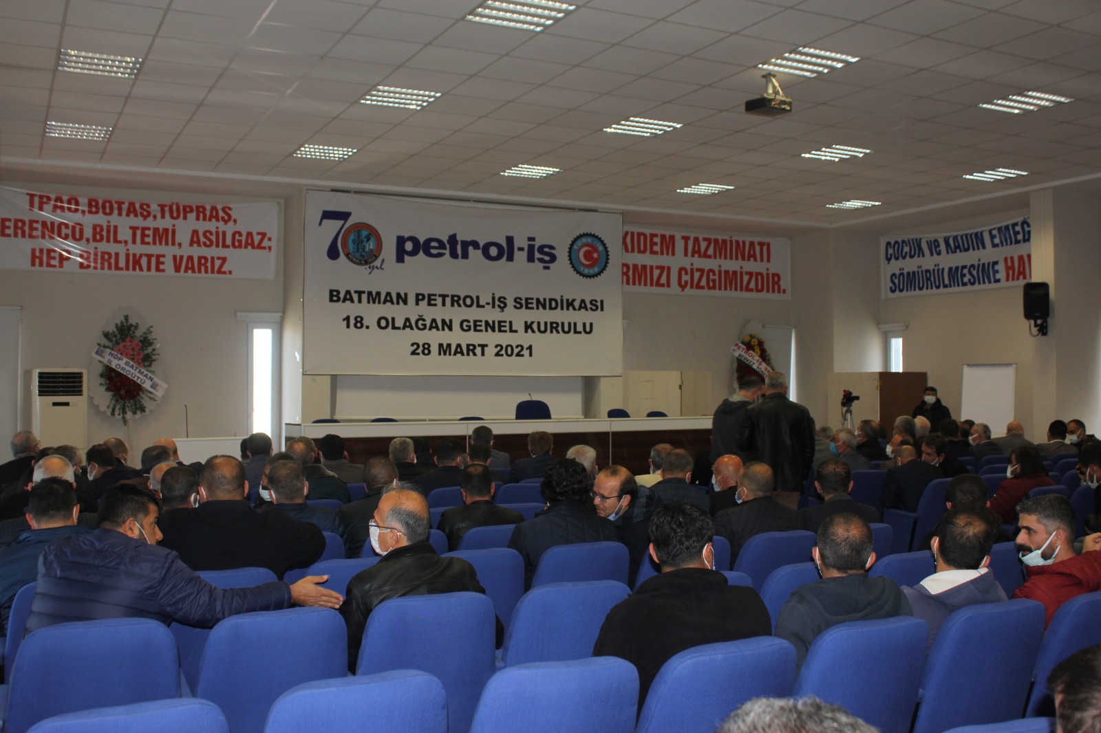 Batman Şubemizin 18. Olağan Genel Kurulu’nda Petrol-İş Merkez Yönetim Kurulu üyeleri, Denetim Kurulu üyeleri, şube başkan ve yöneticileri, Batman’da kurulu ve faaliyet gösteren sendikaların, siyasi partilerin ve demokratik kitle örgütlerinin temsilcileri, Batman şubemizin örgütlü olduğu işyerlerinden temsilciler ve üyelerimiz yer aldı.