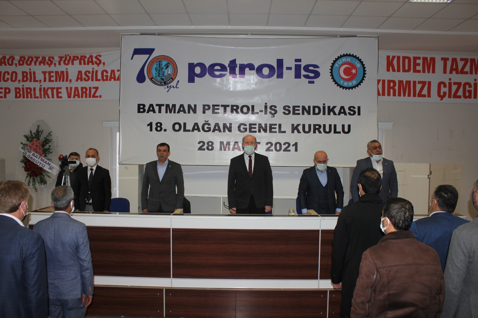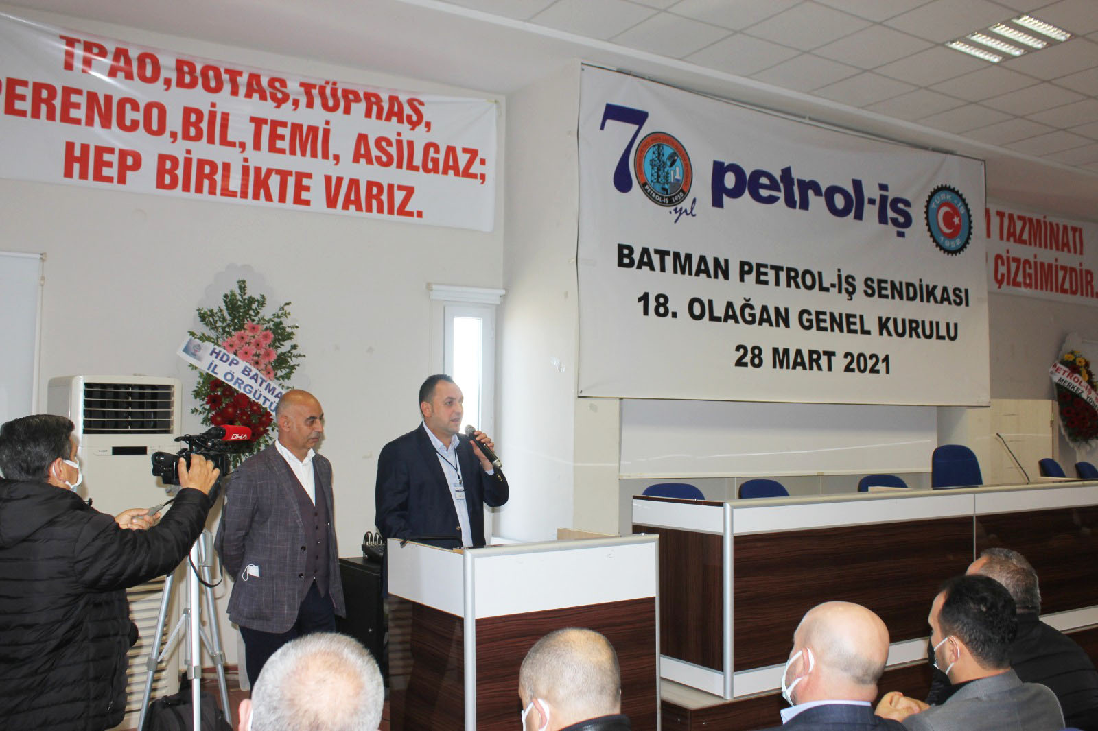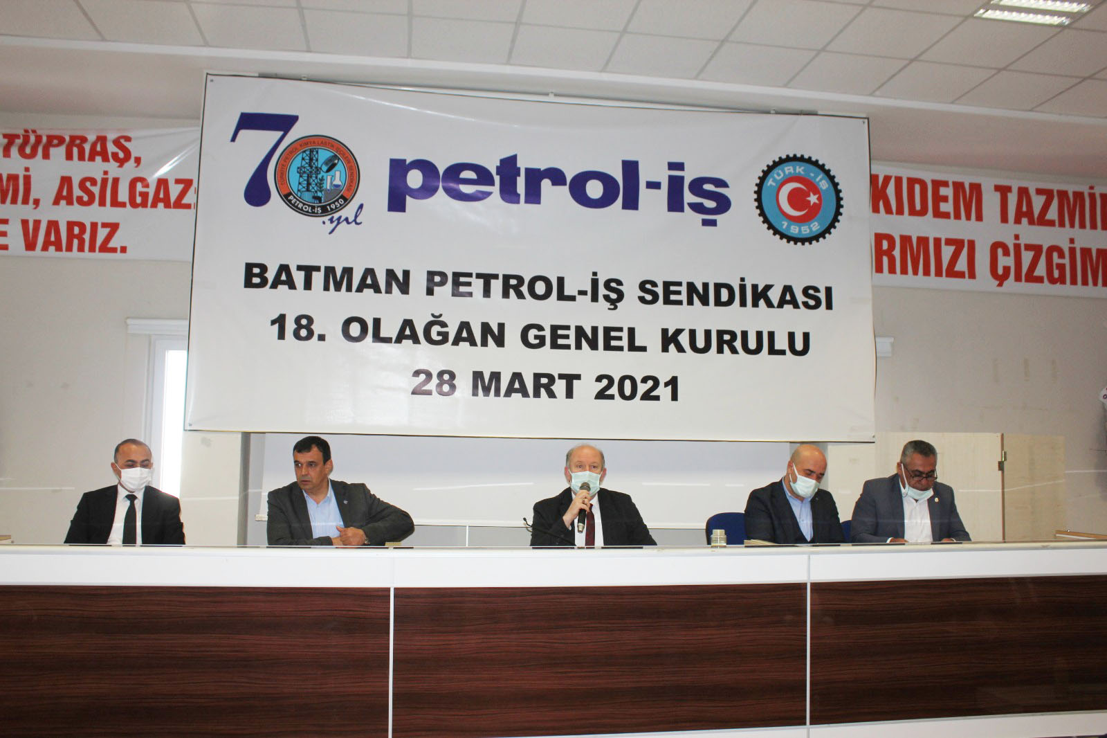 Batman Şubemizin 18. Olağan Genel Kurulu’nda Petrol-İş Merkez Yönetim Kurulu üyeleri, Denetim Kurulu üyeleri, şube başkan ve yöneticileri, Batman’da kurulu ve faaliyet gösteren sendikaların, siyasi partilerin ve demokratik kitle örgütlerinin temsilcileri, Batman şubemizin örgütlü olduğu işyerlerinden temsilciler ve üyelerimiz yer aldı.