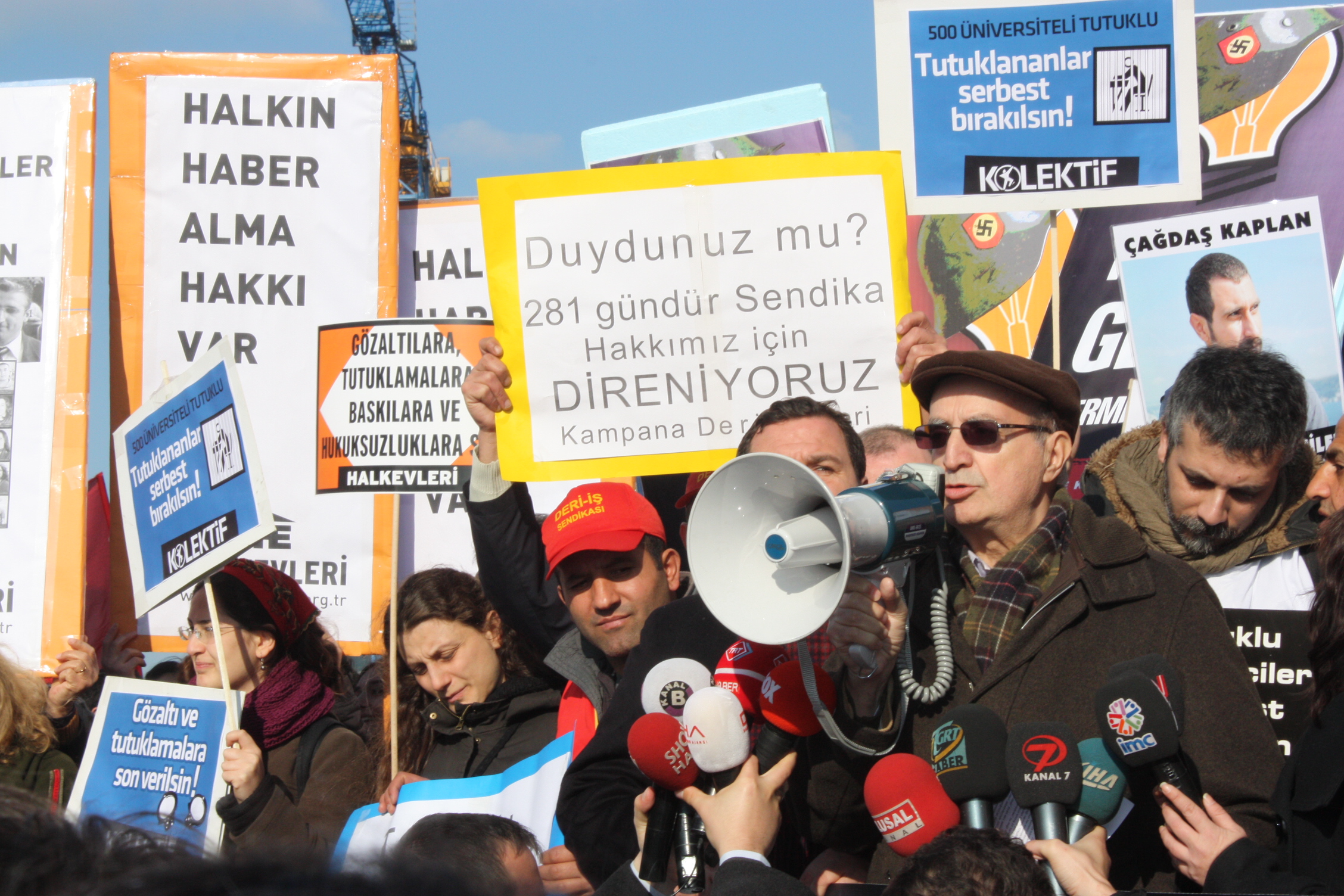 “İddianameler boş, gerçekçi değil, söylenenler yalan. Ama her şey bu ceberrut iktidar tarafından gerçekleştiriliyor. Artık bizlerin de alternatif olarak birşeyler yapması lazım. Ortak düşünce, ortak eylem temelinde sonucu değiştirecek birşeyler yapmalıyız. Yarın içeride olanların yanında olmamamız gibi bir şeyin garantisi yok. Bizler, Sendikal Güç Birliği Platformu olarak taşıdığımız sorumluluğun gereği olarak üzerimize düşen görevi yapmaya çaba gösteriyoruz. Bu anlamda da herkesi, her kesimi göreve çağırıyoruz.”