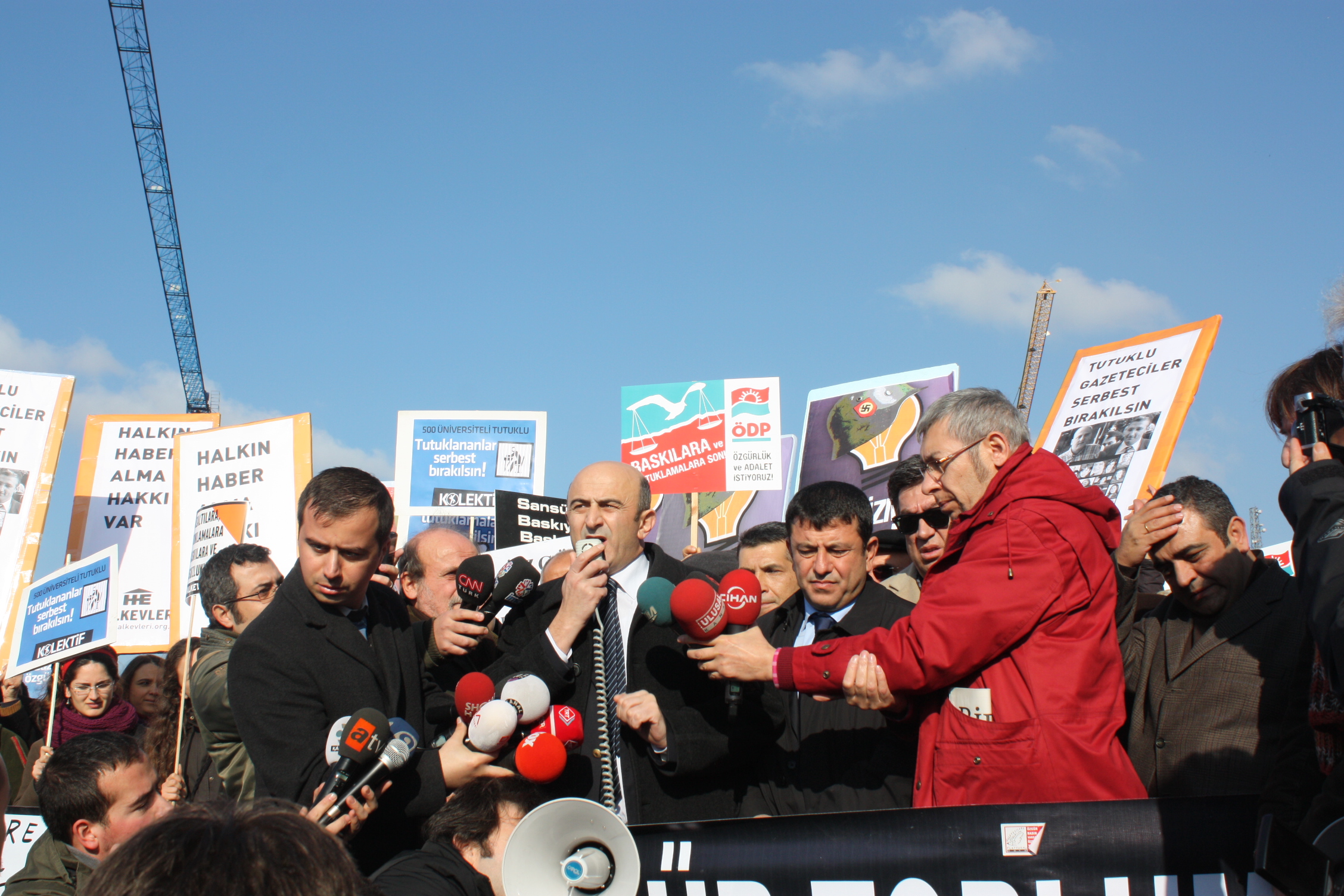 İstanbul Çağlayan Adliyesi’nde yapılan Odatv davasının 2. duruşmasını izleyen gazeteci örgütleri, siyasi partiler, sendikalar, milletvekilleri, sivil toplum kuruluşları, gençlik örgütleri, yazarlar, aydınlar, okurlar yapılan kitlesel basın açıklamasında, “ Yargılanan ifade özgürlüğüdür. Özgür basın susturulamaz” diyerek tepkilerini dile getirdiler.