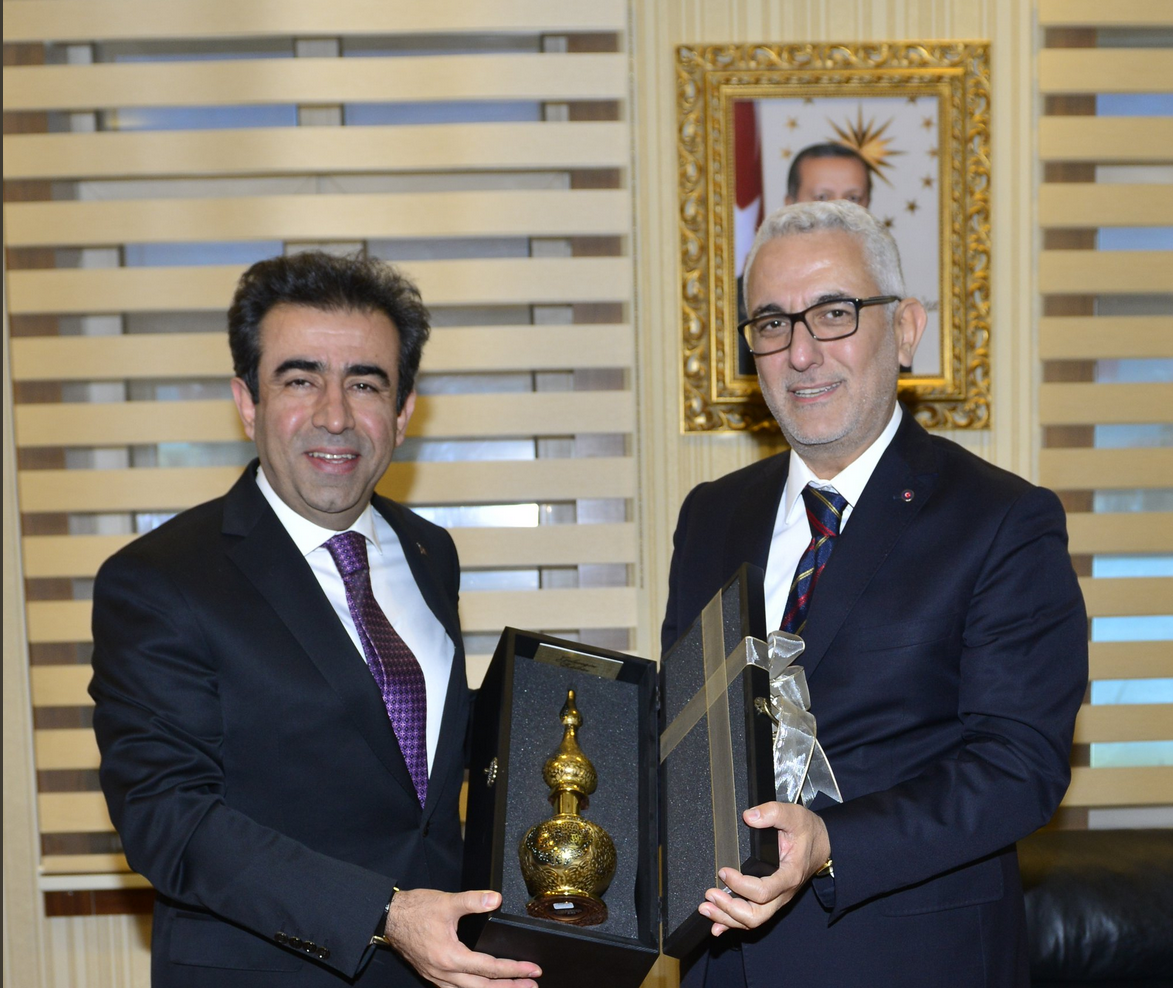 Genel Başkanımız Ali Ufuk Yaşar, Vali Hasan Basri Güzeloğlu’na sendikamız adına bir plaket hediye etti. Vali Güzeloğlu da nezaketinden ve iyi dileklerinden dolayı sendikamız adına Genel Başkanımız Ali Ufuk Yaşar’a teşekkür etti.