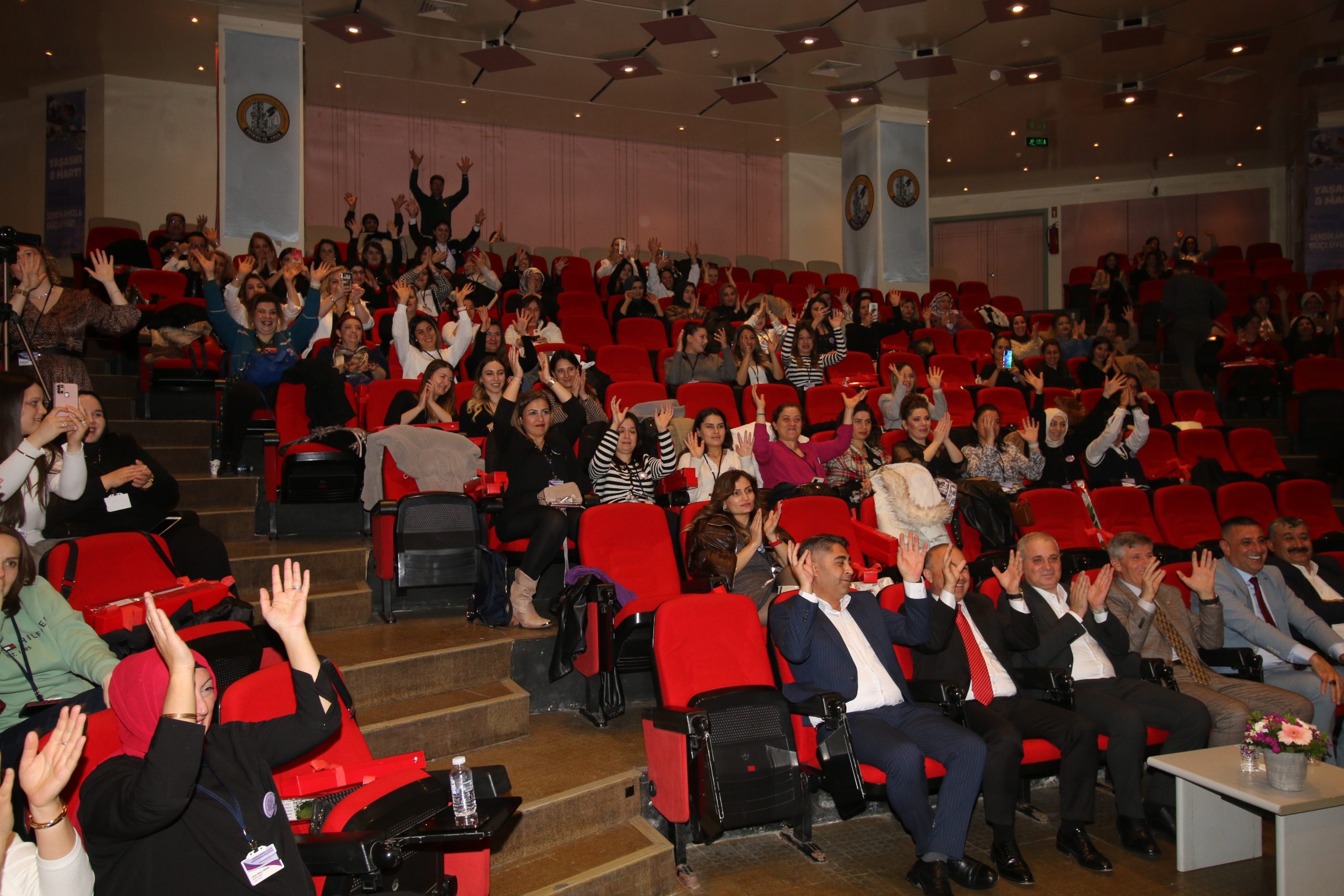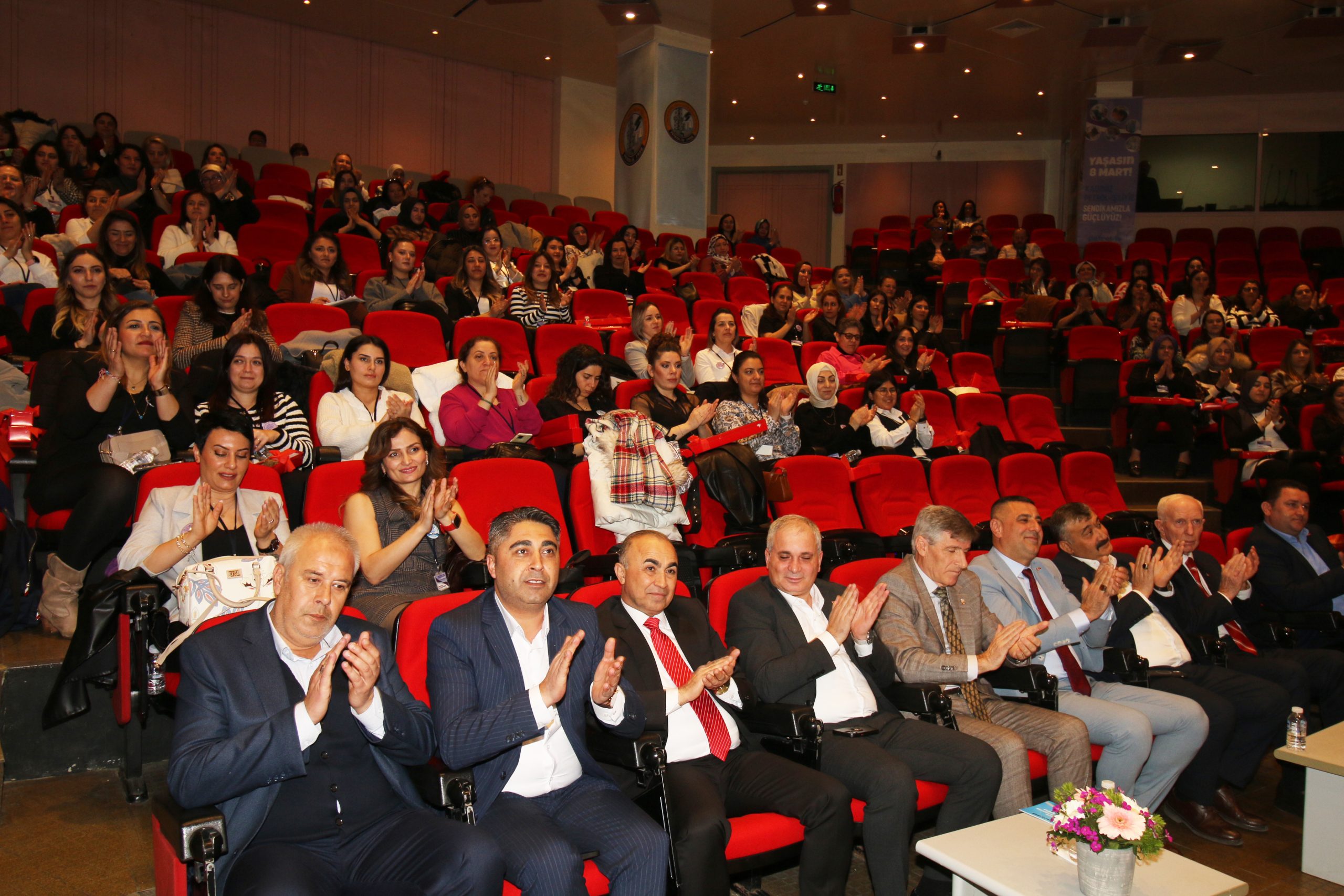 Genel Merkezde yapılan ve sendikamız kadın çalışanlarının da izinli sayılarak katıldığı etkinlikte yaklaşık 200 kişi yer aldı. Sendikamız Genel Merkez Yönetimi de programı takip ederek kadın üyelerimizin sendikal mücadeleye bakışı, çalışma yaşamındaki sorunlarını, sendikadan taleplerini not aldı.