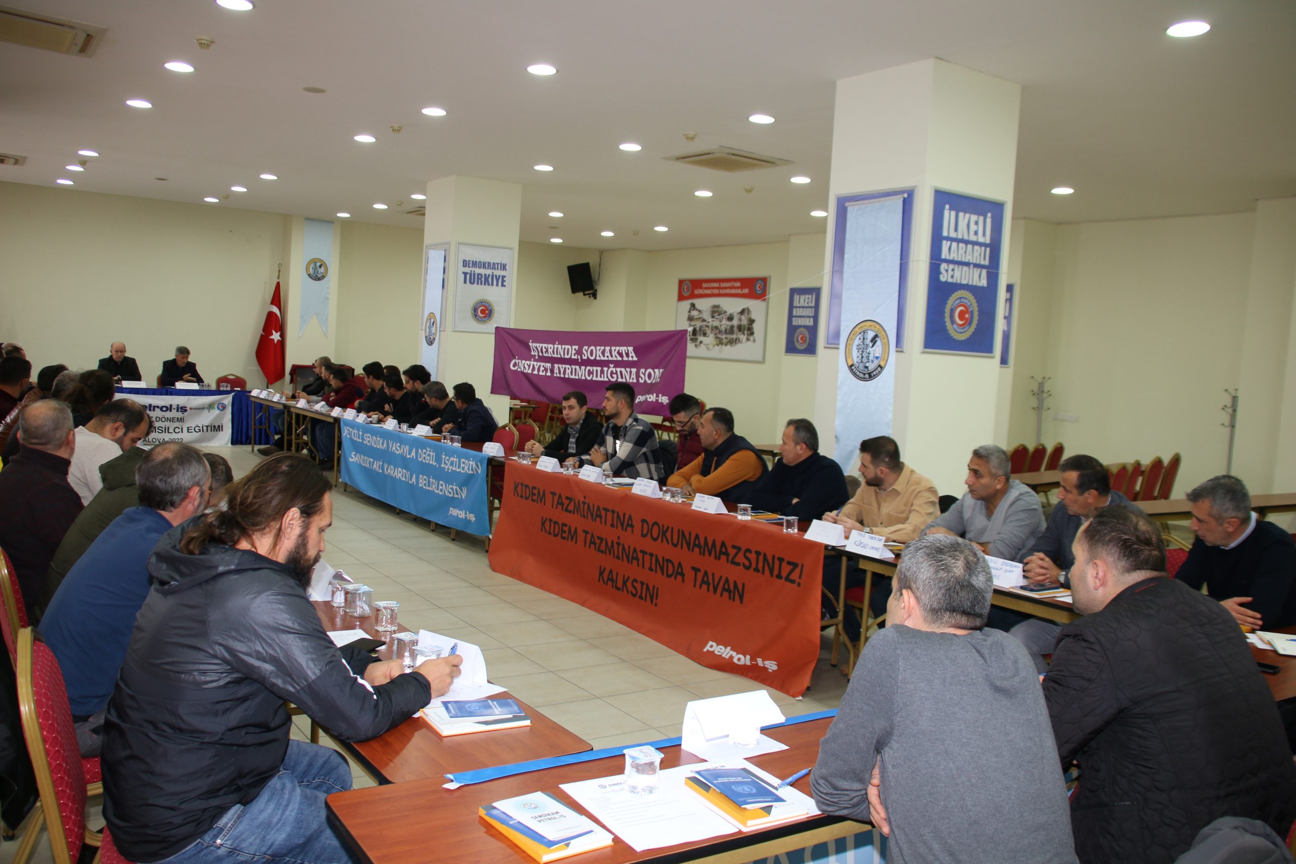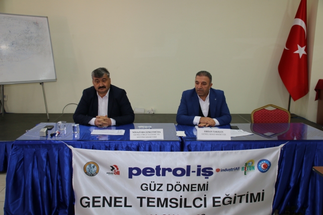 Programları sebebiyle Genel Başkanımız Süleyman Akyüz ve Genel Sekreterimiz Salih Akduman eğitimin açış bölümüne katılırken; Genel Mali Sekreterimiz Erhan Yakışan ile Genel Örgütlenme ve Eğitim Sekreterimiz Niyazi Recepkethüda kapanış kısmında temsilcilerimizle biraraya geldi.