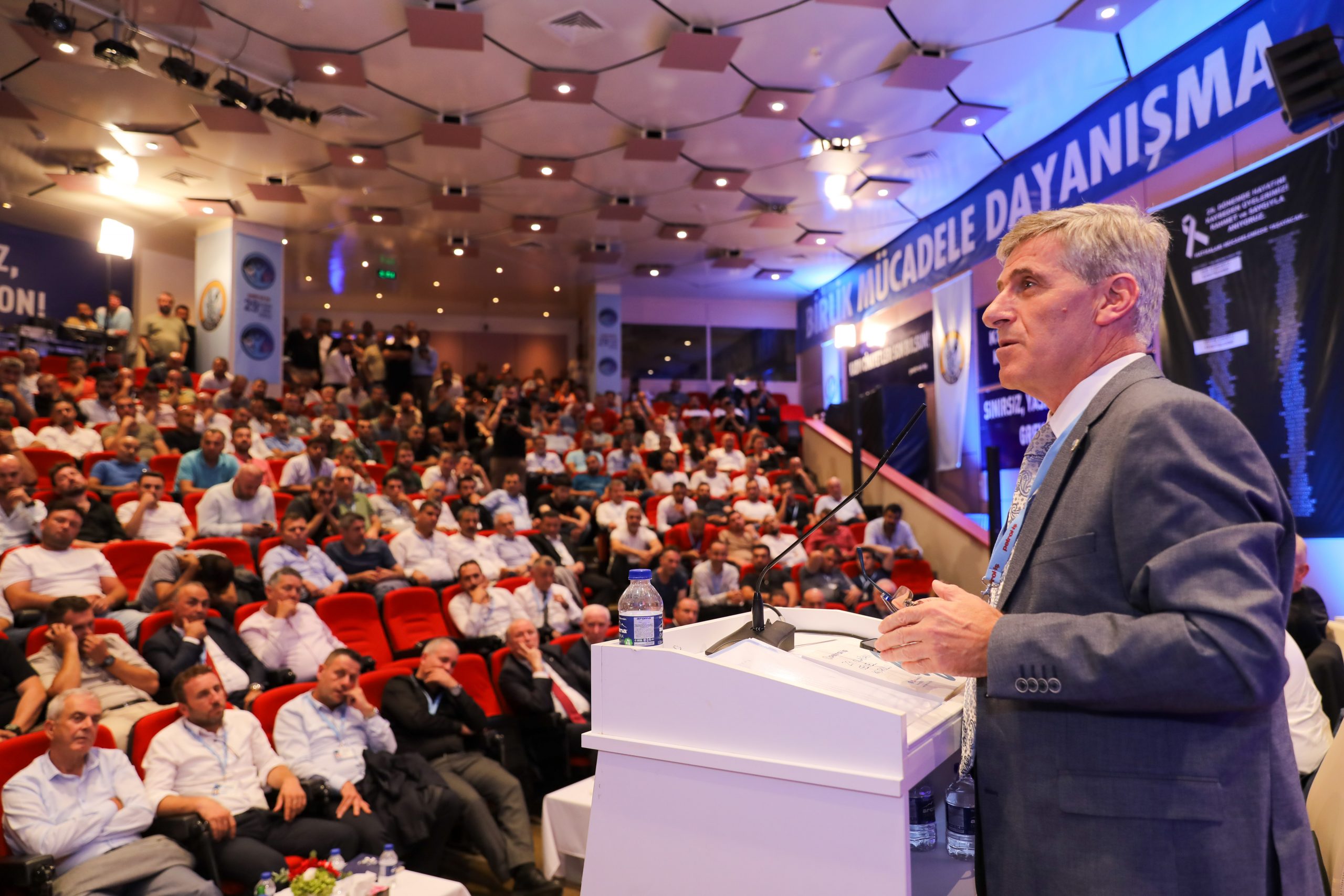 Divanın kongre gündemini açıklamasının ardından sendikamız Genel Başkanı Süleyman Akyüz kürsüye davet edildi. Genel Başkan Akyüz konuşmasında Petrol-İş Sendikası’nın son dört yılındaki gelişmeleri katılımcılarla paylaştı. Petrol-İş’in Türkiye ve uluslararası emek hareketi içerisindeki yeri ve konumunun her geçen yükseldiğini belirten Akyüz, emeğin mavi bayrağının Türkiye’nin dört bir yanında dalgalanması için mücadeleyi yükselteceklerini belirtti.