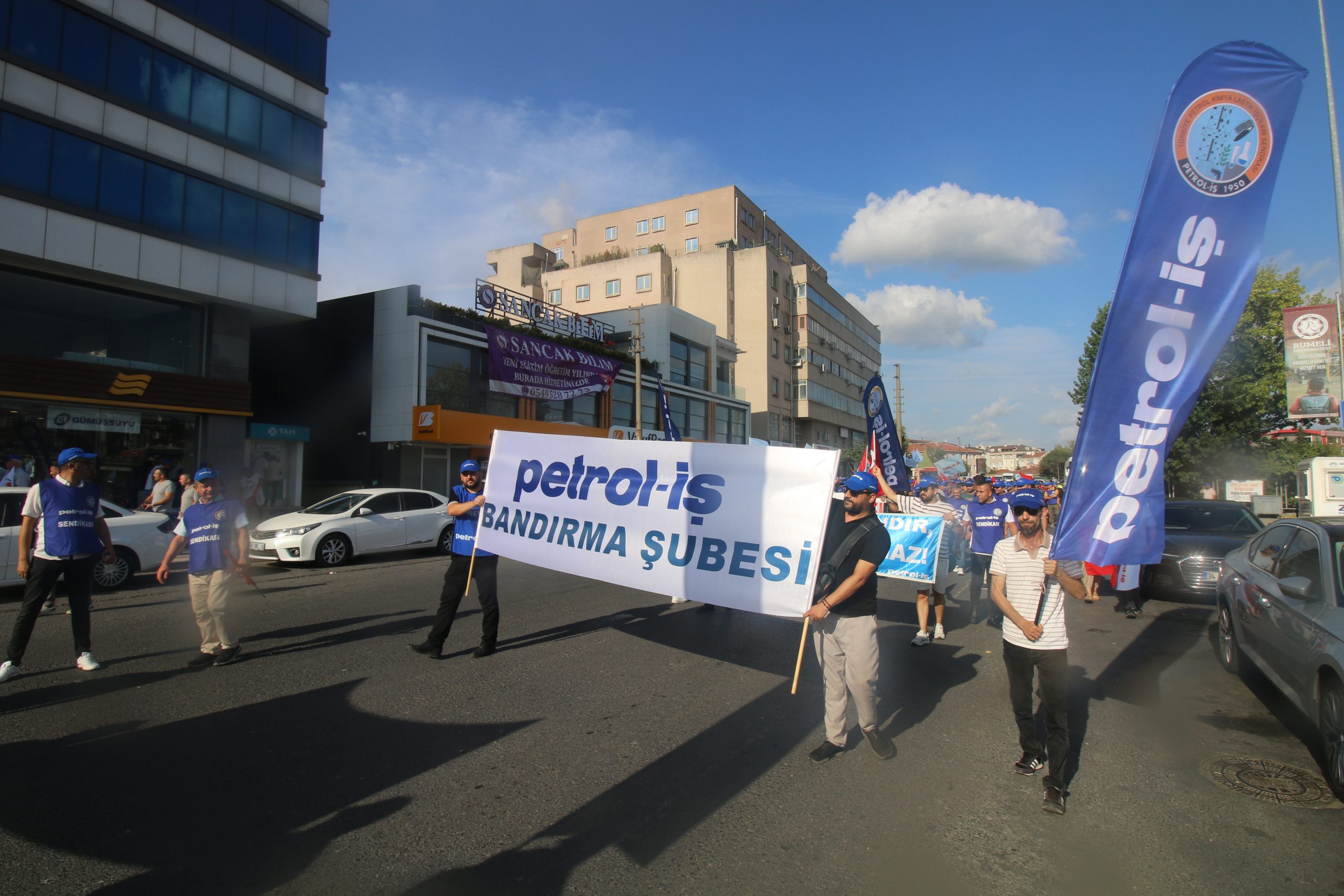 Sendikamız Petrol-İş de yönetici ve üyeleri ile eylemde yerini aldı. Sendikamız Merkez Yönetim Kurulu üyeleri; Bandırma, Bursa, Gebze, İstanbul 1, İstanbul 2 ve Trakya Şube Yöneticileri ile örgütlü olduğumuz işyerlerinden temsilci ve üyelerimiz mitinge katılım sağladılar. Saat 16.30’da kortejlerin toplanmaya başlamasının ardından Kent Park Meydanı’na sloganlarla yüründü ve miting alanına giriş yapıldı.