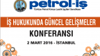 Sendikamız tarafından 2 Mart 2016 Çarşamba günü genel merkezimizde İş Hukukunda Güncel Gelişmeler Konferansı düzenlenecektir. Konferans saat 10.00'da Genel Başkanımız Ali Ufuk Yaşar'ın açılış konuşması ile başlayacak, Zorunlu Arabulucuk, Özel İstihdam Büroları, Kıdem Tazminatı konularına ilişkin sunum ve değerlendirmeler Petrol-İş Sendikası Hukuk Müşaviri Abdi Pesok, Av. Kürşat Karacabey, Yard. Doç. Dr. Mustafa Göksu, Doç. Dr. Mahmut Kabakçı ve Yard. Doç. Dr. Ulaş Baysal tarafından gerçekleştirilecektir.