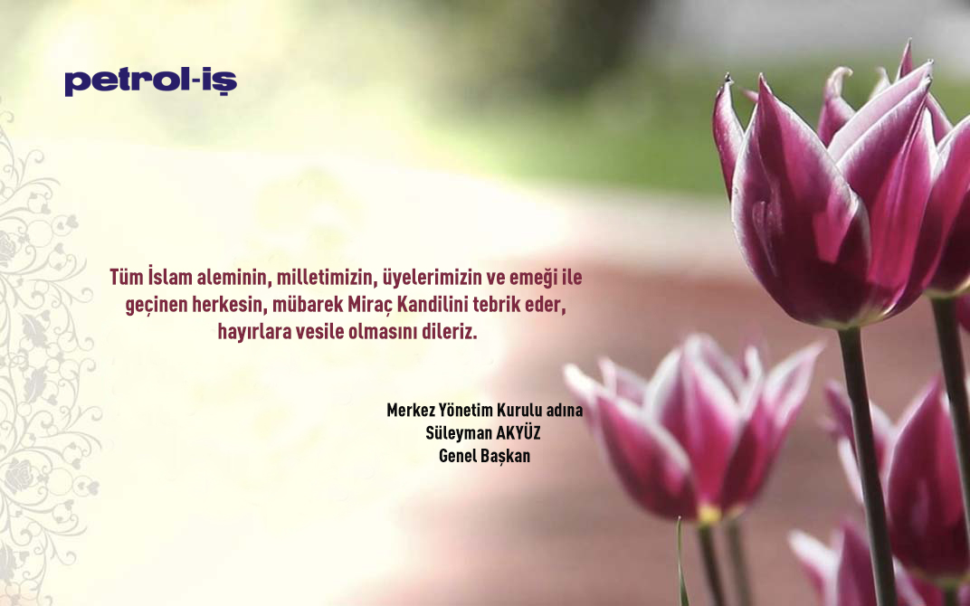 Tüm İslam aleminin, milletimizin, üyelerimizin ve emeği ile geçinen herkesin, mübarek Miraç Kandilini tebrik eder, hayırlara vesile olmasını dileriz.